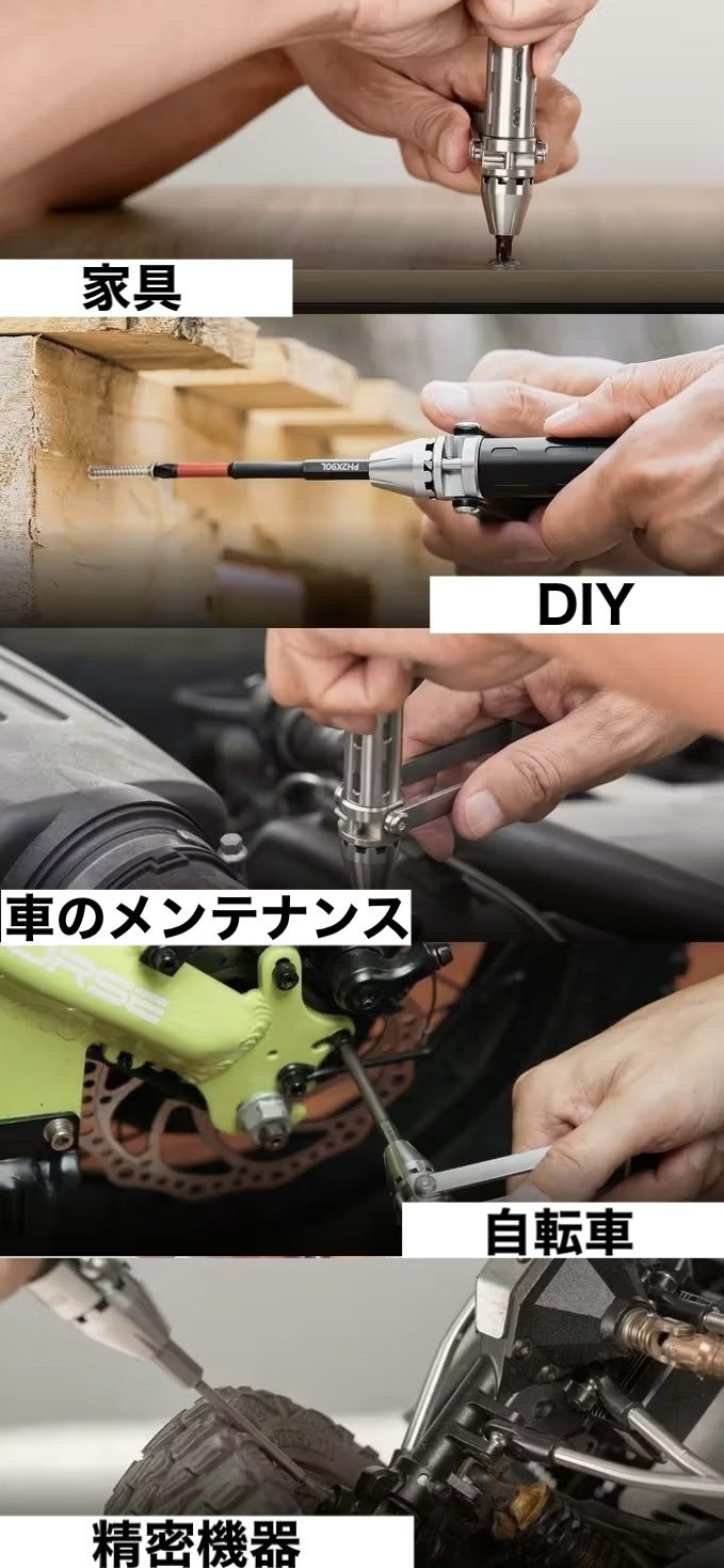 通常のドライバーでは回しづらい狭い作業スペースでも、問題なく使用できます。