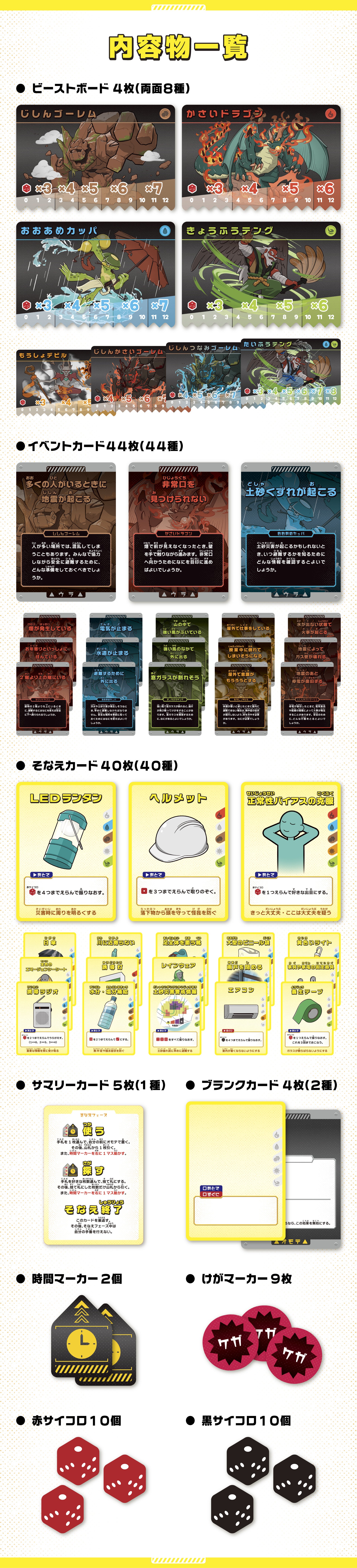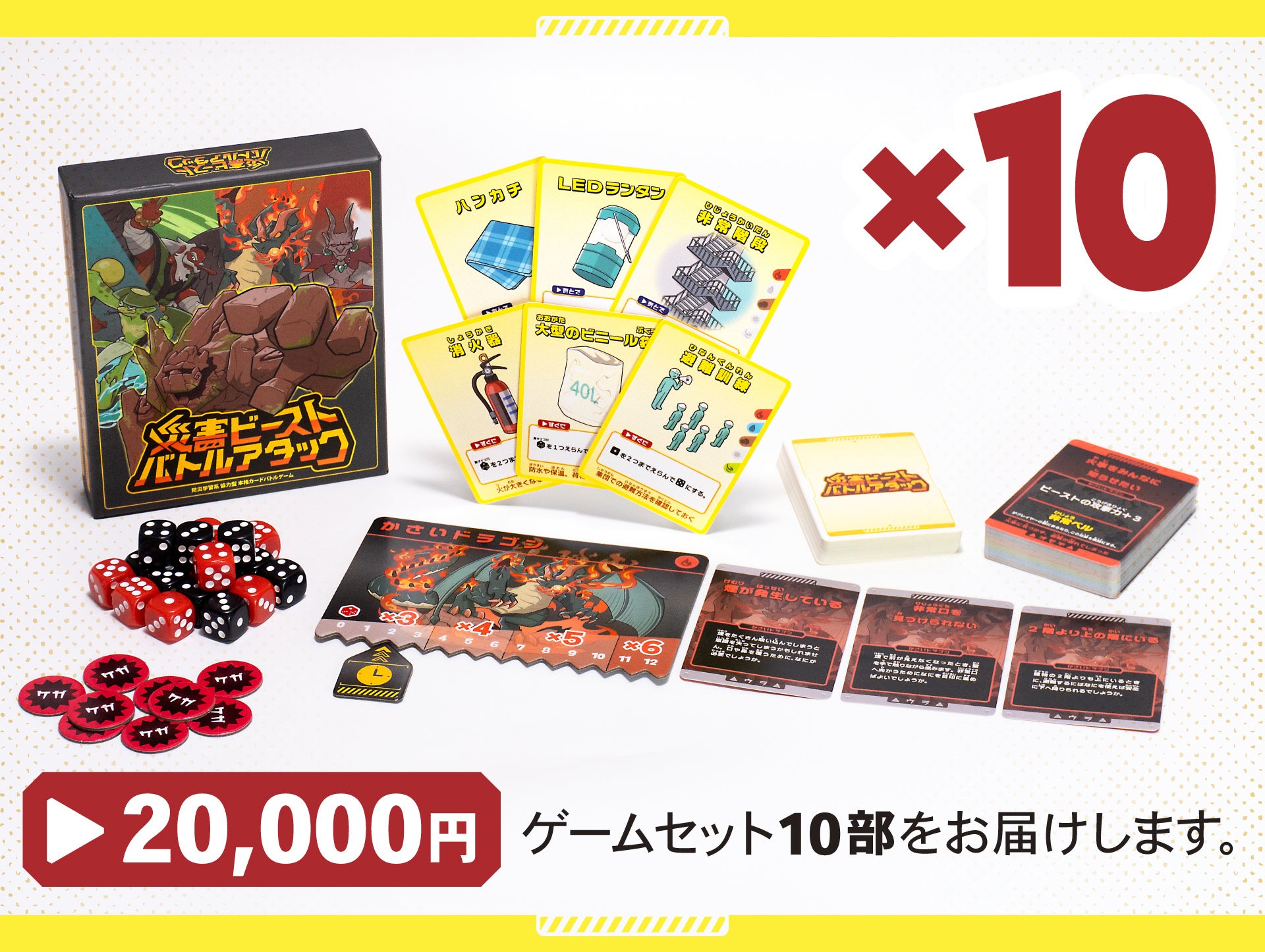 2025/11/05 15:59クラウドファンディングで『災害ビースト・バトルアタック』を応援してくださった皆さまへ多くのご支援・ご声援をいただき、誠にありがとうございました。皆さまのお力添えにより、ついに本作が 一般販売に向けて始動いたしました。このたび、11月21日の全国発売に先がけて、各種量販店・ネット通販サイトにて「先行予約販売」がスタート しました!希望小売価格:2,980円(税込)発売日:2025年11月21日(金)販売形態:全国主要量販店・玩具専門店・各種オンラインショップにて販売一般販売に向けてのプレスリリースhttps://prtimes.jp/main/html/rd/p/000000083.000085174.html参考情報:現在把握できているオンラインショップの先行予約販売先URLhttps://www.yodobashi.com/product/100000001009515286/https://item.rakuten.co.jp/jism/4582262801213-55-67697-n/https://item.rakuten.co.jp/baton-store/sbga-08871/https://item.rakuten.co.jp/boardgame-album/024-1213/https://bodogekitao.com/items/68ff1c7b9ad1d5263258c7ddhttps://www.suruga-ya.jp/product/detail/607666307https://store.shopping.yahoo.co.jp/baton-store/sbga-08871.html?sc_i=shopping-pc-web-result-storesch-rsltlst-img───────────────────災害ビースト・バトルアタック開発チーム もっと見るご支援いただいた皆さまへ