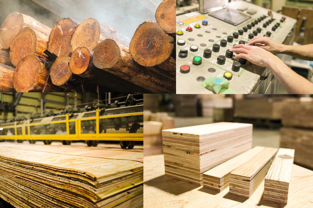 ファーストプライウッド社で製造されている【LVL材】の構造は、「単板積層材」というだけあり、乾燥単板の使用により、縦継ぎ部の分散化、積層による欠点部分の分散化などが行われるため、製品の強度などにバラツキが少なく、安定した品質が保証されています。