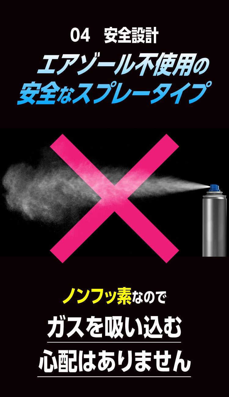 ・対象物は着衣、着用したままスプレーしないでください。