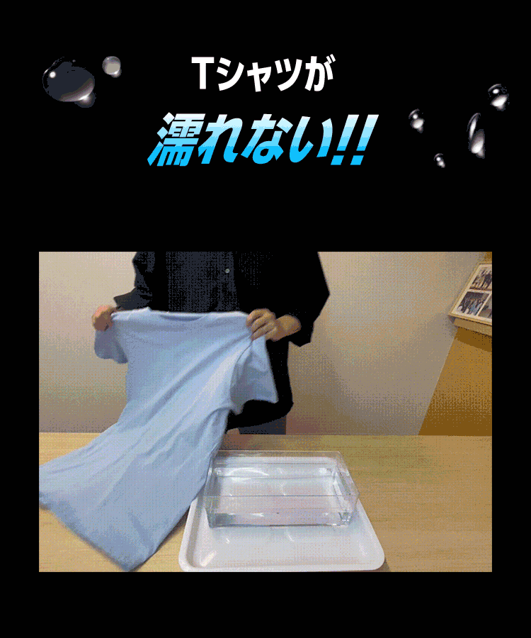 Tシャツも水を撥くようになるので汗ジミ対策にもおすすめ!
