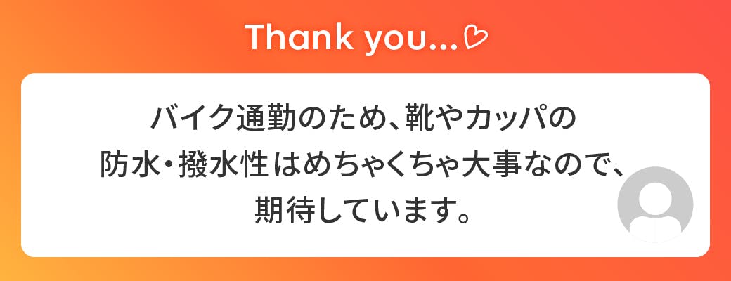 「へのカッパ 超撥水スプレー」のCAMPFIRE担当者です。