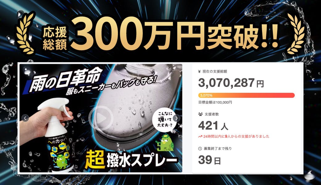 ▼「へのカッパ 超撥水スプレー」のプロジェクトページはこちら