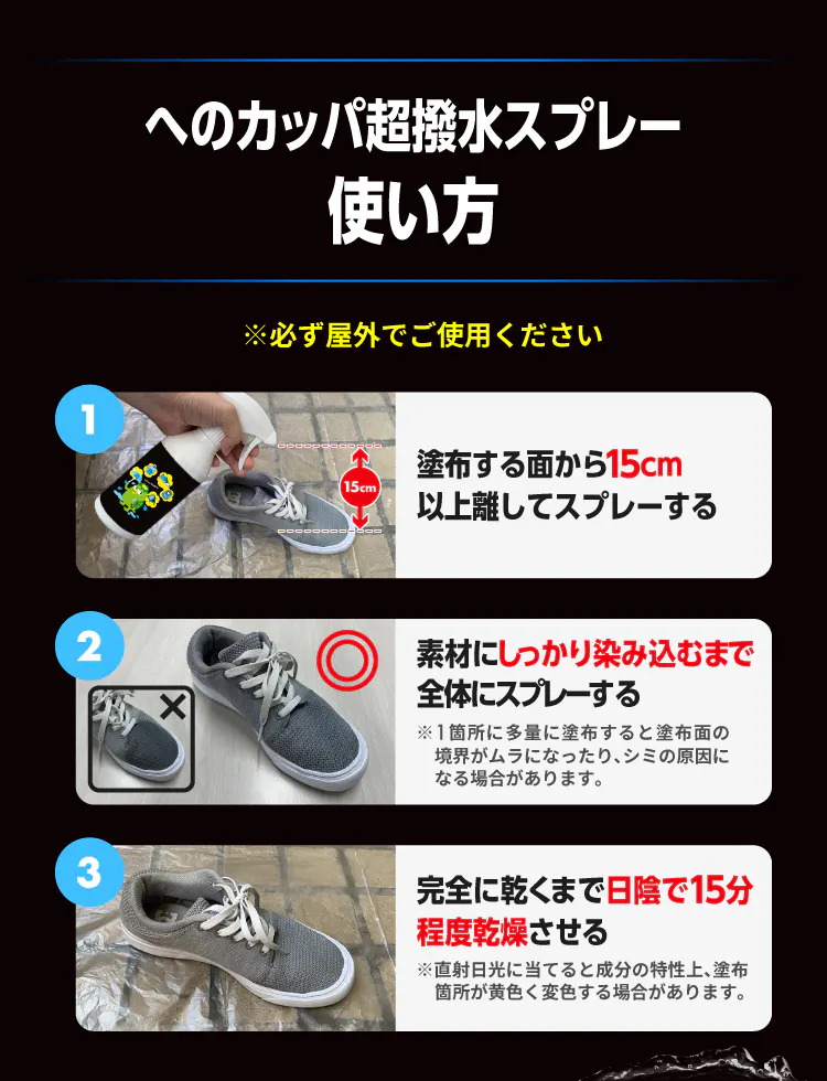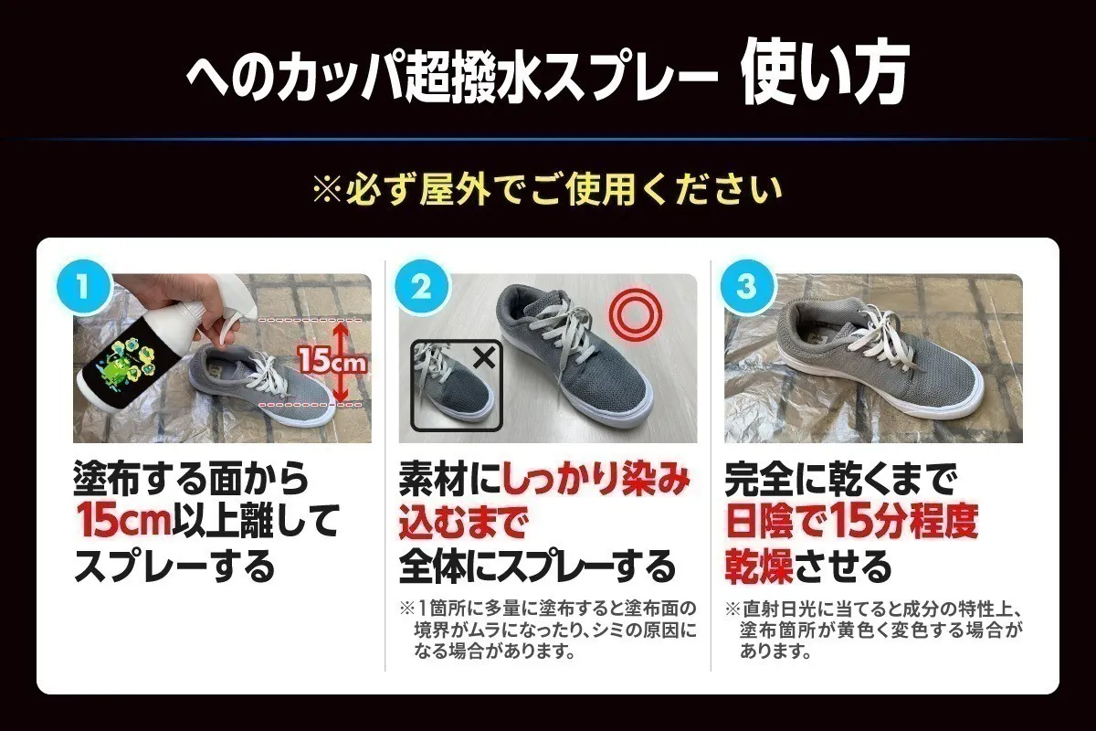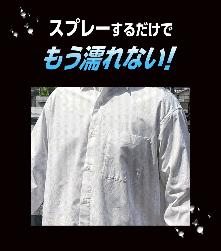 そんなときもスプレーしておけば出かけるときには超撥水効果を得られます!