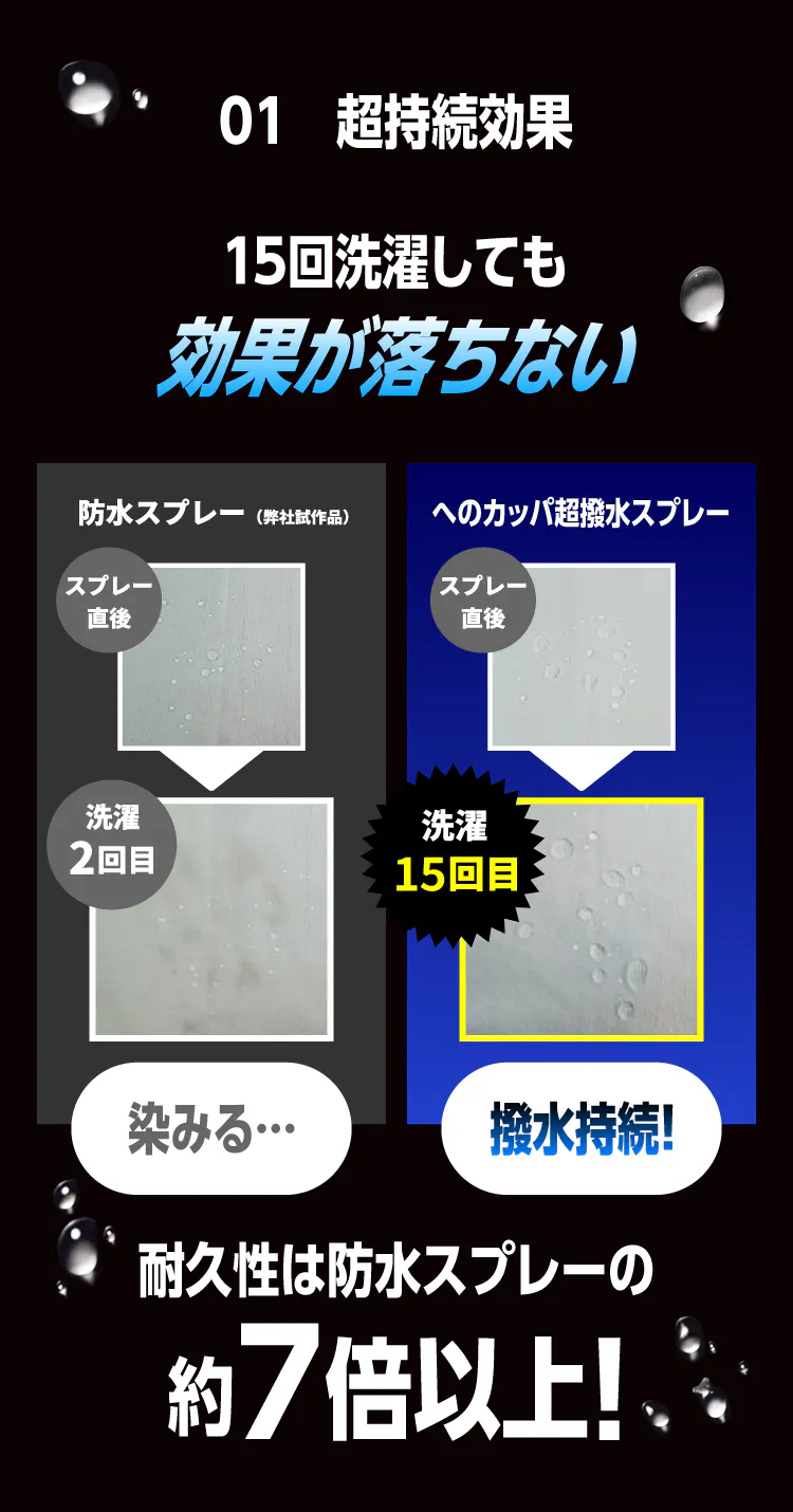 超撥水スプレーなら15回洗濯しても効果がそのまま!