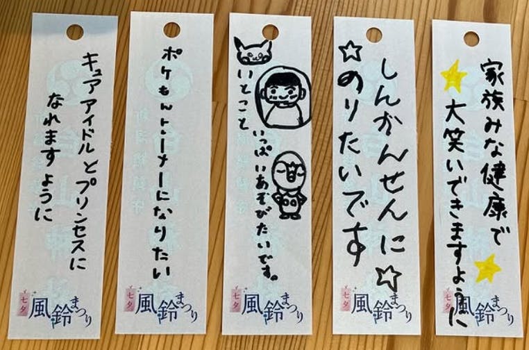 引き続き高騰する物価の影響により、地域の子どもたちに配布する短冊の枚数を減らしたくありません。子どもたち地域の宝です。みなさん思い思いのお願いを短冊に書き記し、祈り、風鈴に掛けます。 この様子は、夏の神社を彩る風物詩であるとともに、地域の人々や子どもたち、親子が絆を深め、郷土愛を育む大切なお祭りです。多くの方の「熱意」と様々な「協力」でできている温かいおまつりです。地域のみなさまを笑顔にするために、人と自然に優しい「七夕風鈴まつり」に一生懸命取り組んでいきます。私たちと一緒にみんなのキラキラとした笑顔を未来へつなげていくために、どうかご支援をお願いいたします。