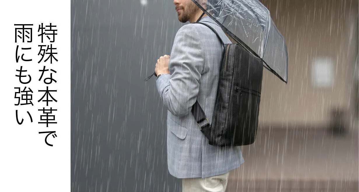 当然、オシャレなだけではなく、必要なビジネス道具がしっかり収納できて、本革なのに雨に強いという機能面も充実しています。