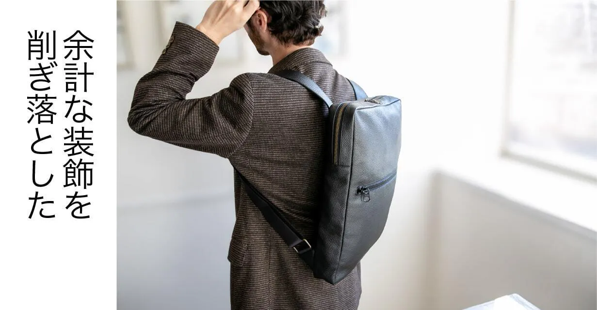 余計な装飾を削ぎ落とし、シンプルさを追求したミニマルデザイン。このレザーリュックは、ビジネスシーンでもカジュアルな日常でも自然に馴染みます。