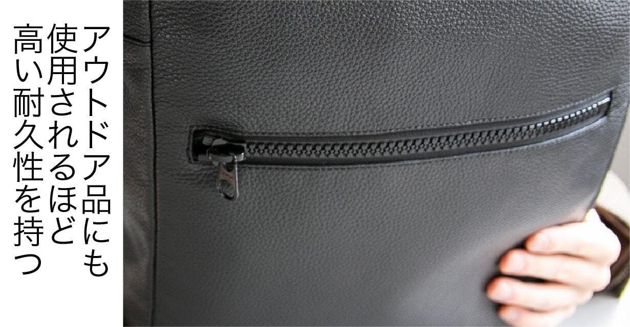ファスナーの滑りが非常に良く、ストレスフリーな使用感を提供。使用感までをトータルで高める要素として、バッグ全体の魅力を支える重要なパーツです。