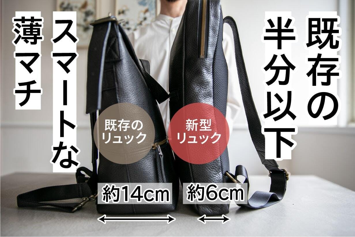 薄いからといって、収納力を犠牲にする必要はありません。このリュックのマチ6cmという絶妙な設計は、スマートな外観を保ちながら、日常に必要なアイテムをしっかり収納できる容量を確保しています。