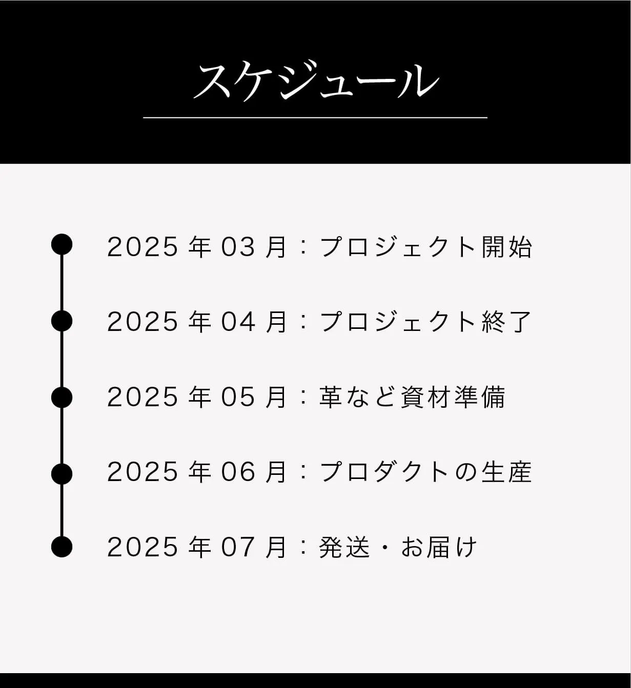 ●引渡し時期: 各リターン詳細に記載の発送予定月を引き渡し時期とします。但し、開発・生産状況によって遅れが生じる場合がありますのでその際は当プロジェクトページ内の「活動報告」または購入者へのメール等で連絡します。