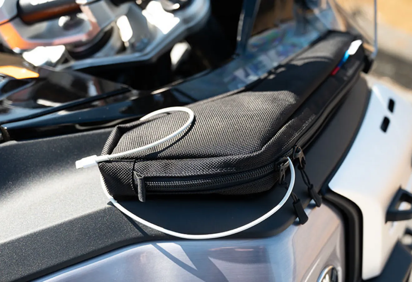 大幅リニューアルされたBMW R1300GS Aadventureですが、収納スペースが少ないのが難点。そこでバイクのフォルムを損なわないシンプルなタンクトレバッグを作りました。