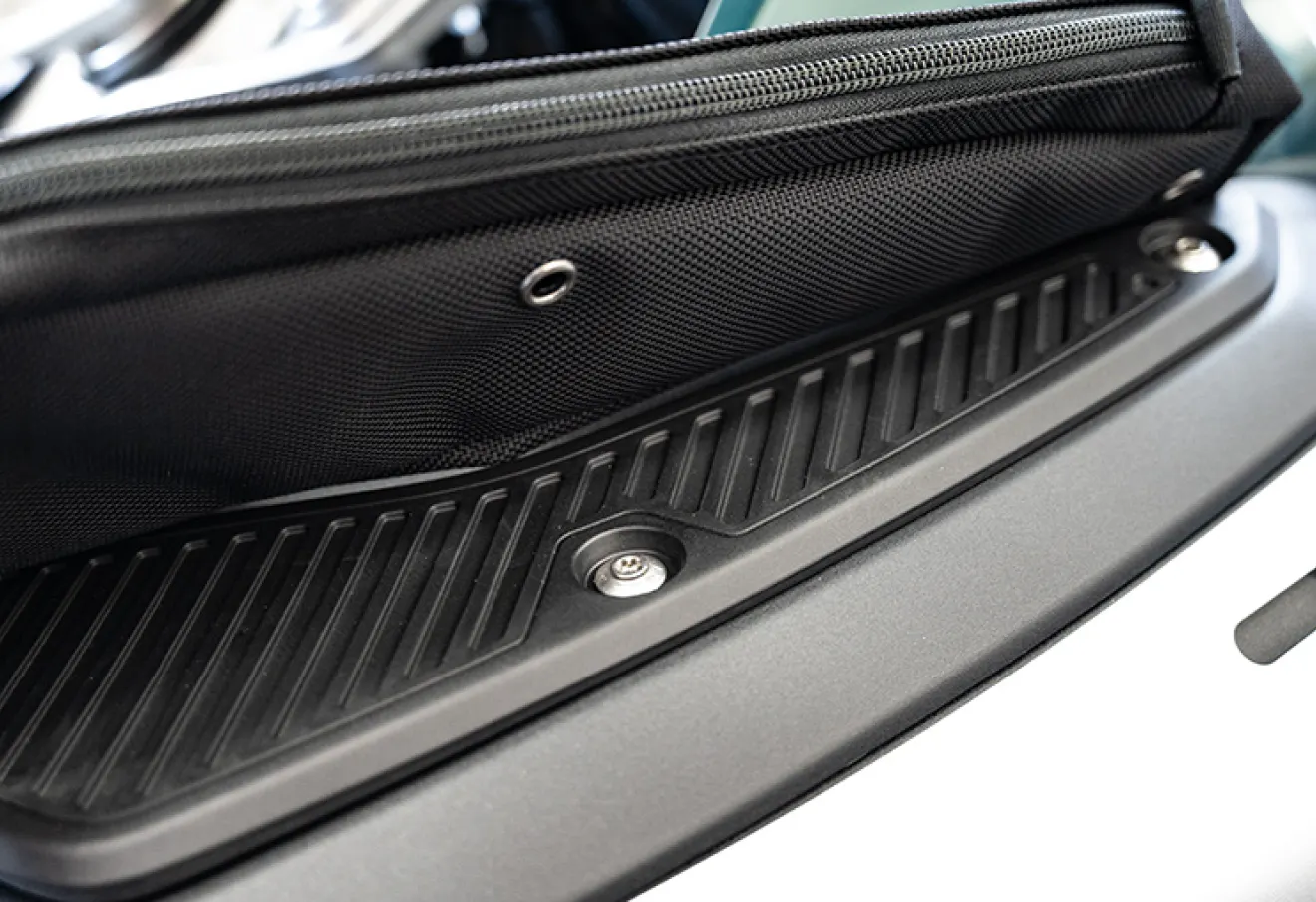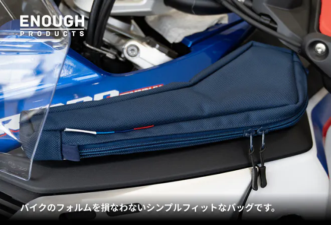 しかもトレー部分と同じ形状なので、違和感なく純正品のようなバッグです。バッグの厚みは極薄なので収納量は限られますが、バッグがパンパンになることがないので、装着していてもバイクのフォルムを損ないません。