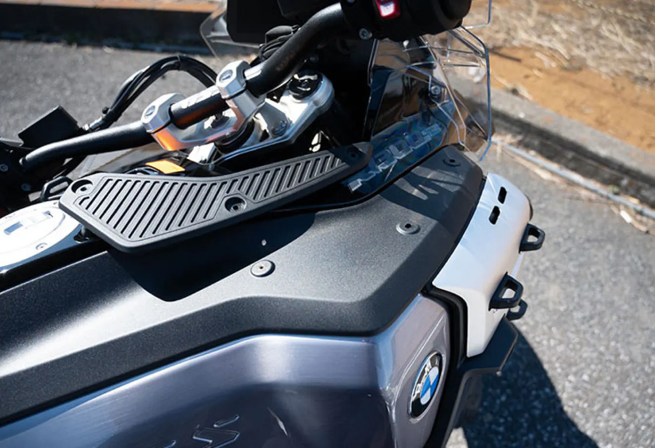 バイクタンク上部にあるタンクトレー部分は3つのネジで装着されています。このネジを利用しバッグと共締するだけの簡単脱着!