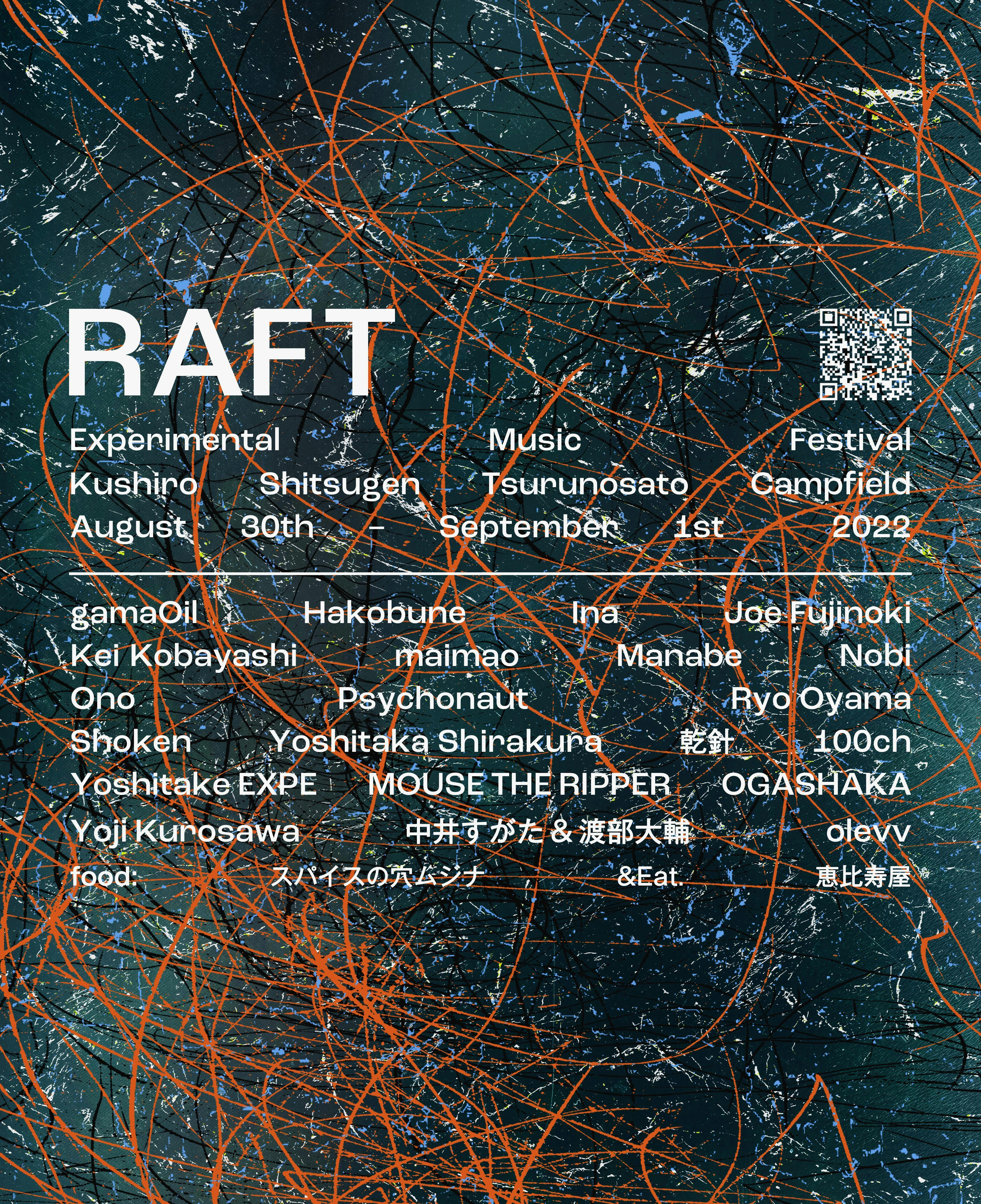 アンビエントや実験音楽といえば日本で今、欠かす事の出来ない存在Tobira Records店主"Hakobune"や、橋の下世界音楽祭の中心バンド Turtle Islandのギターでアンビエントベースのソロライブ活動も行う"CazU-23"、Re:birthや春風のアンビエント&アートステージ監修やブッキングを務め、自身もDJとして出演を続ける"Yoshitaka Shirakura"、名古屋の先鋭的なギャラリー&ライブハウスSpazio Ritaの主催"Baptisma"、私的播磨のオウテカこと前衛フリーキーグリッチな鬼才"Name by names"などを始め、和歌山では稀有な豪華ラインナップとなっております!!そして、和歌山・関西勢や、RAFTお馴染みメンバーもマスト&ナイスメンバーで迎えます♫