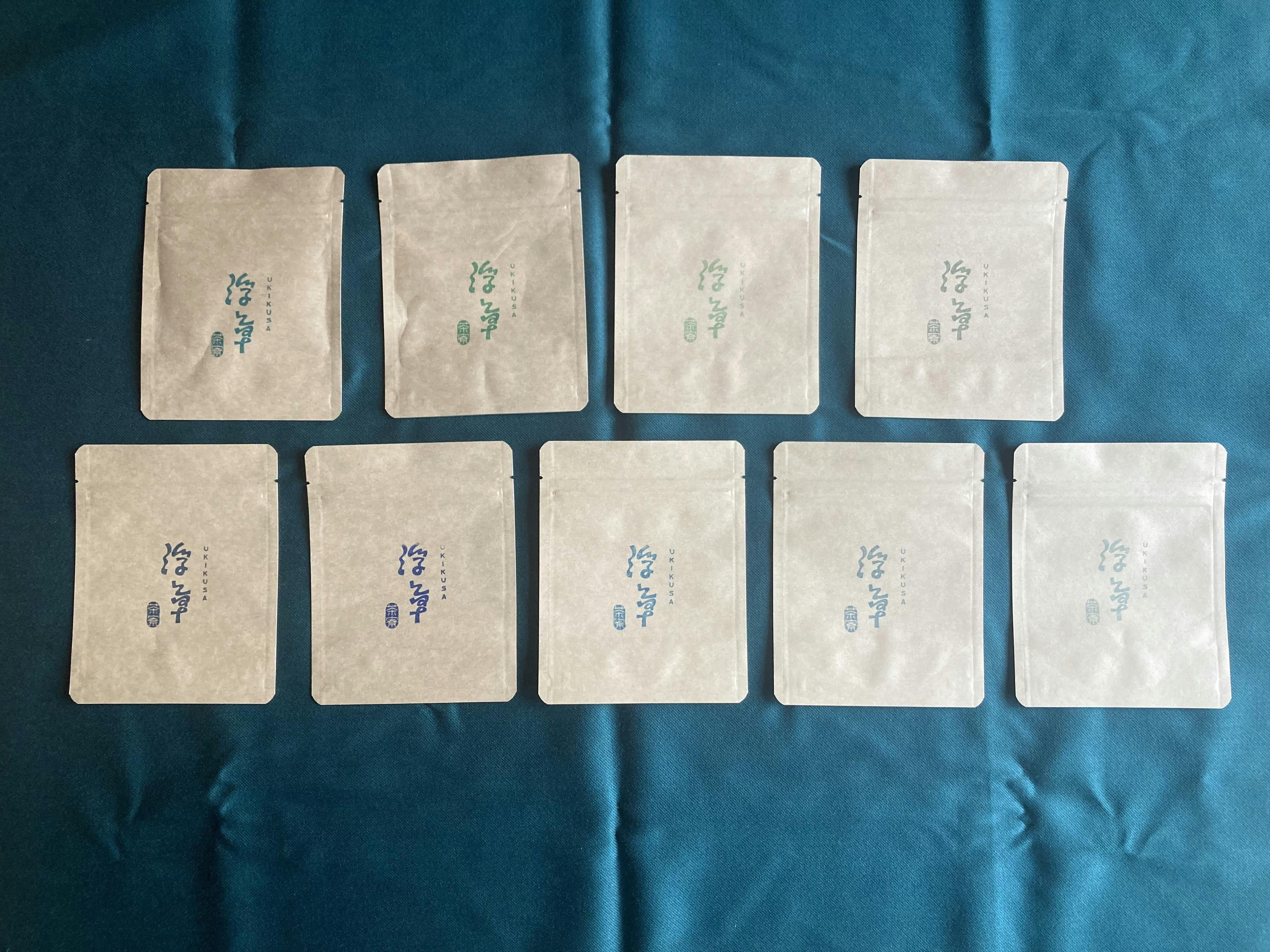 品種や産地で色分けをしてロゴをスタンプした茶袋に入れて、茶葉を販売します。