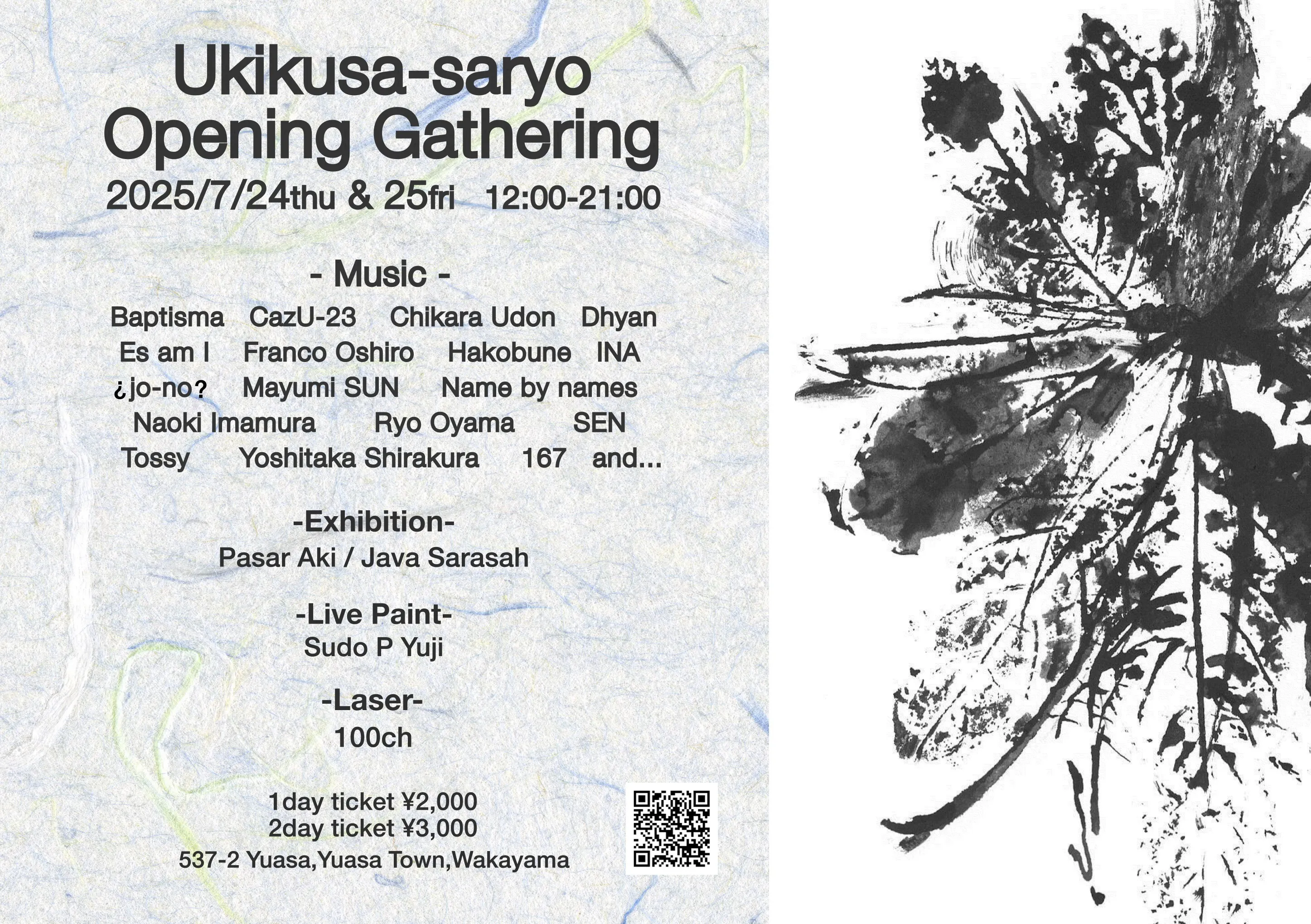 浮草茶寮の開店日、7/24から新月の2日間、オープニングイベントを開催します。全国から店主にゆかりのある皆様に集って頂きます。音楽家の皆様には店舗のコンセプトに合わせ、十人十色、アンビエントアプローチでのセットを奏でて頂きます!