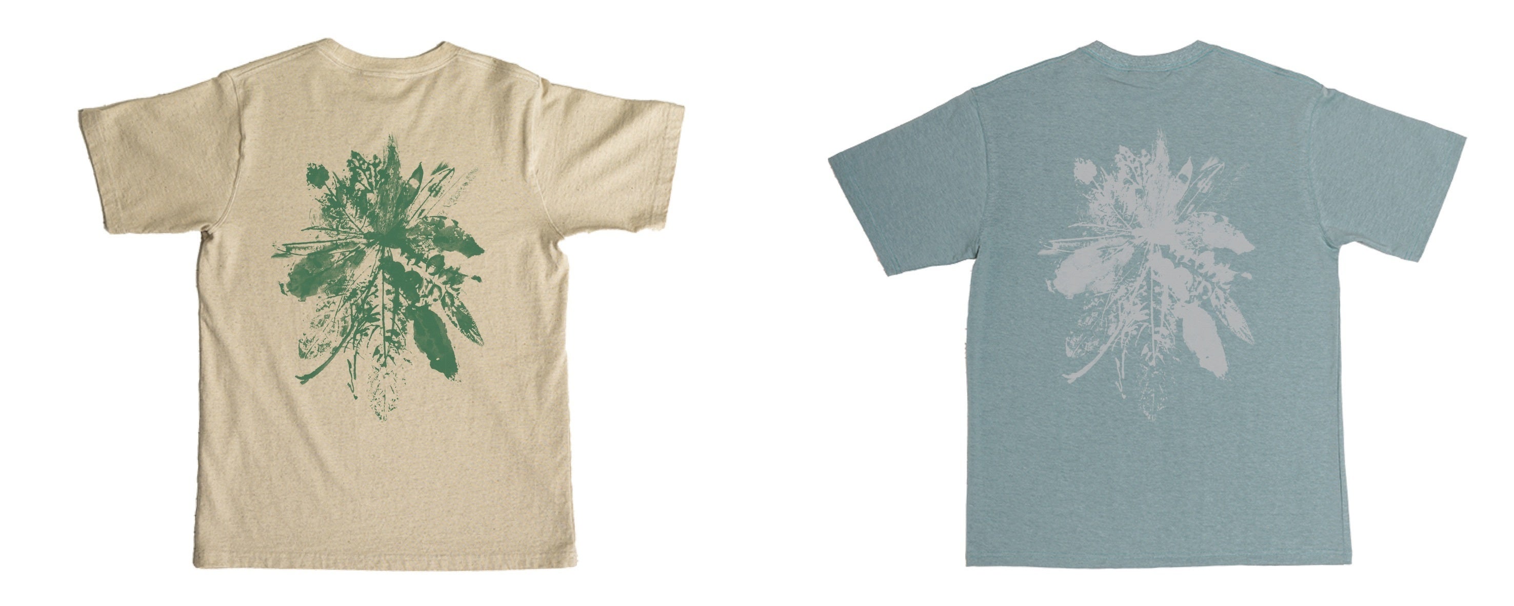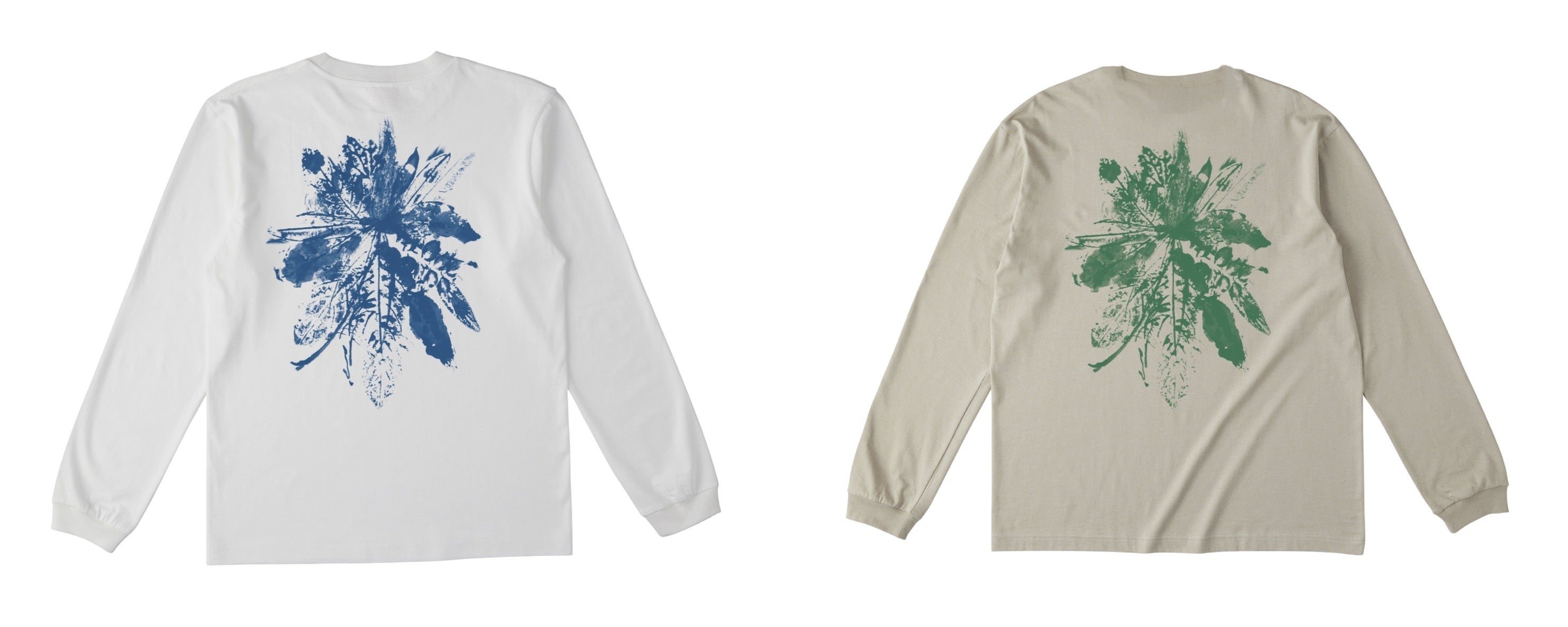 スドウPユウジ氏の浮草ロゴと、大国町Edenico 毎週金曜 レジデントDJのNaoki Imamura氏による開店に向け寄贈して頂いた押花のデザインを背中にシルクスクリーンプリントしたTシャツとロンT。