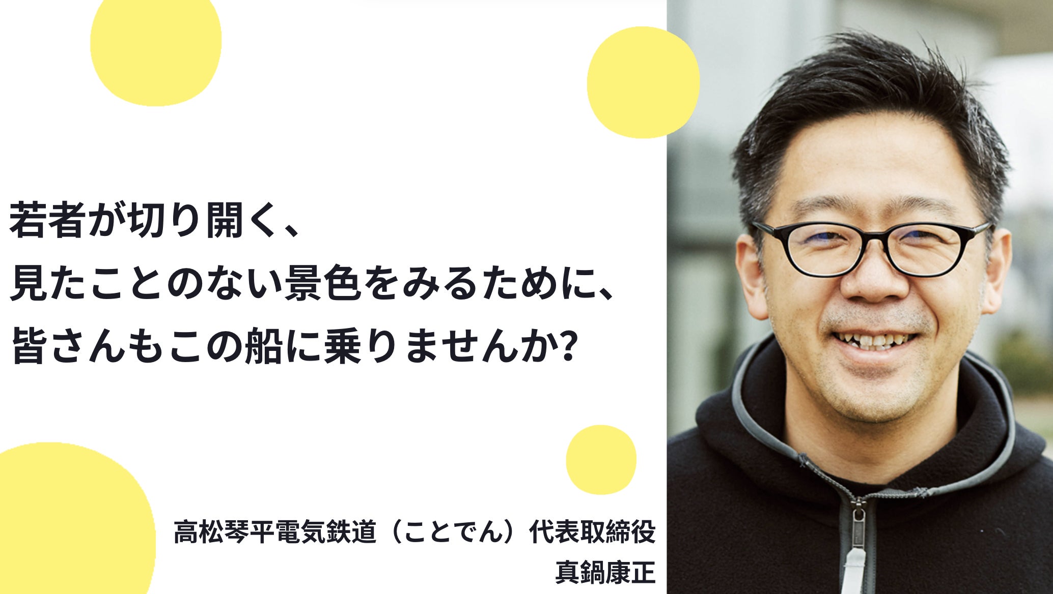 プロフィール:高松琴平電気鉄道(ことでん)代表取締役。1976年香川県高松市生まれ。一橋大学経済学部卒業後、コンサルティング会社、投資会社などを経て、2009年高松市に戻り、ことでん入社。2014年より現職。