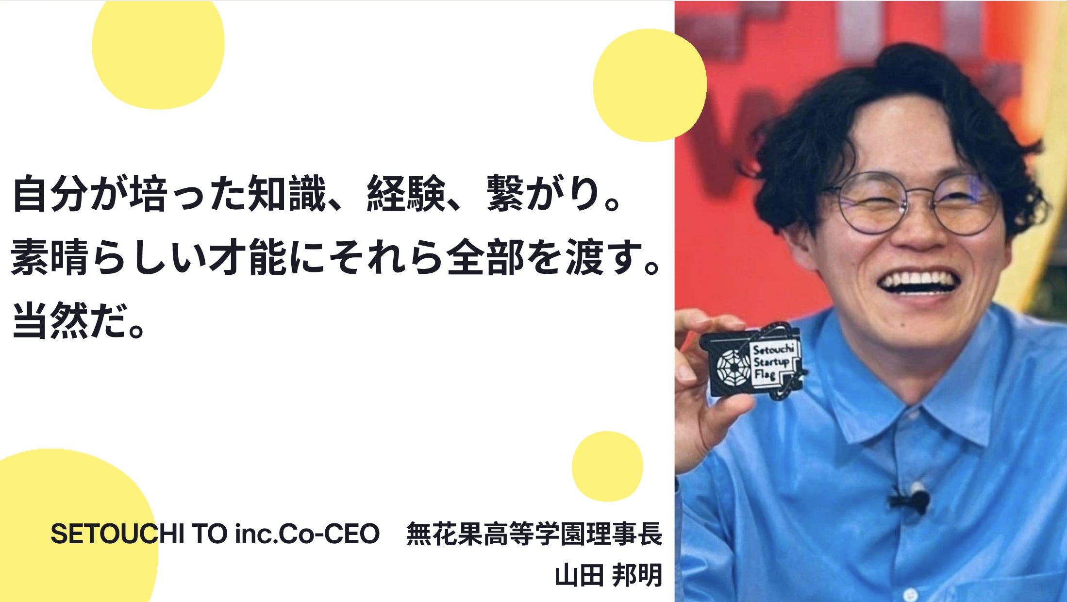 ・SETOUCHI TO inc.Co-CEO 無花果高等学園理事長 山田邦明さん