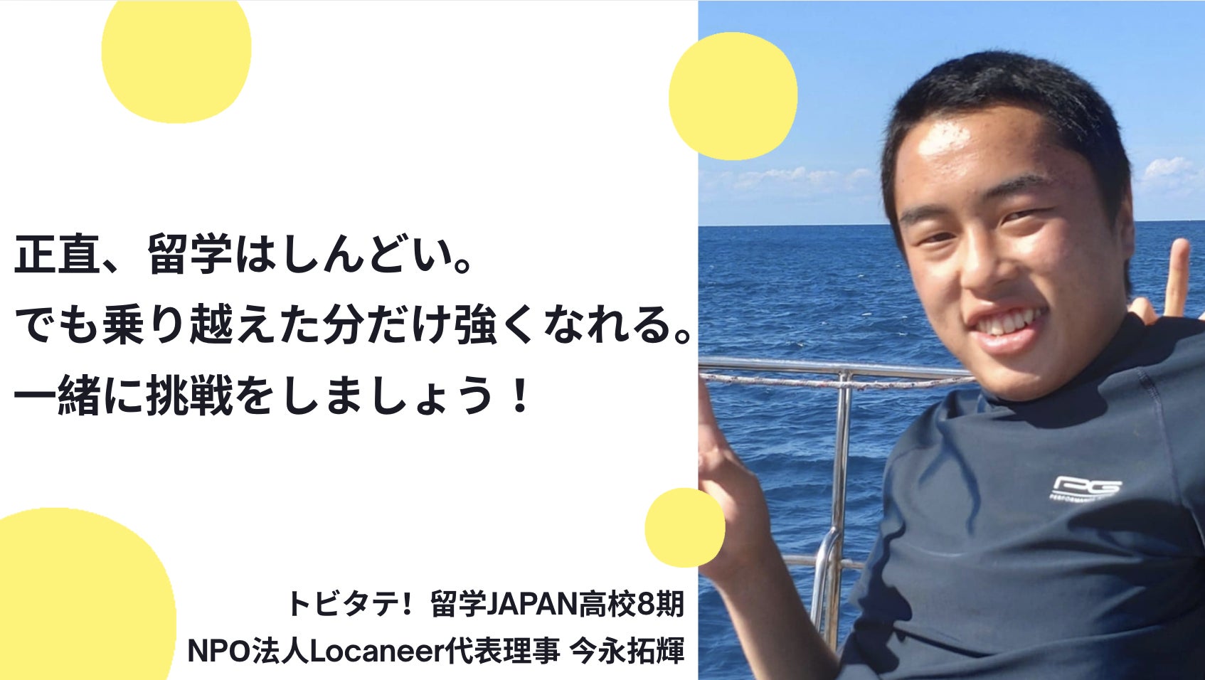 ・トビタテ!留学JAPAN高校8期、NPО法人Locaneer代表理事 今永拓輝