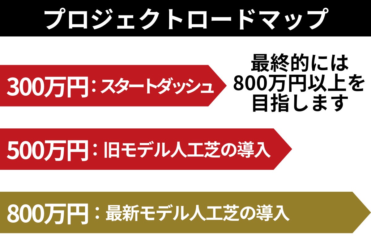 長年の使用により、現在の人工芝は劣化が進み、選手たちの安全面やプレー環境に影響が出始めています。新たな芝への張り替えにより、より良い練習環境を整え、次世代の子どもたちが安心してサッカーに取り組める場を提供したいと考えております。