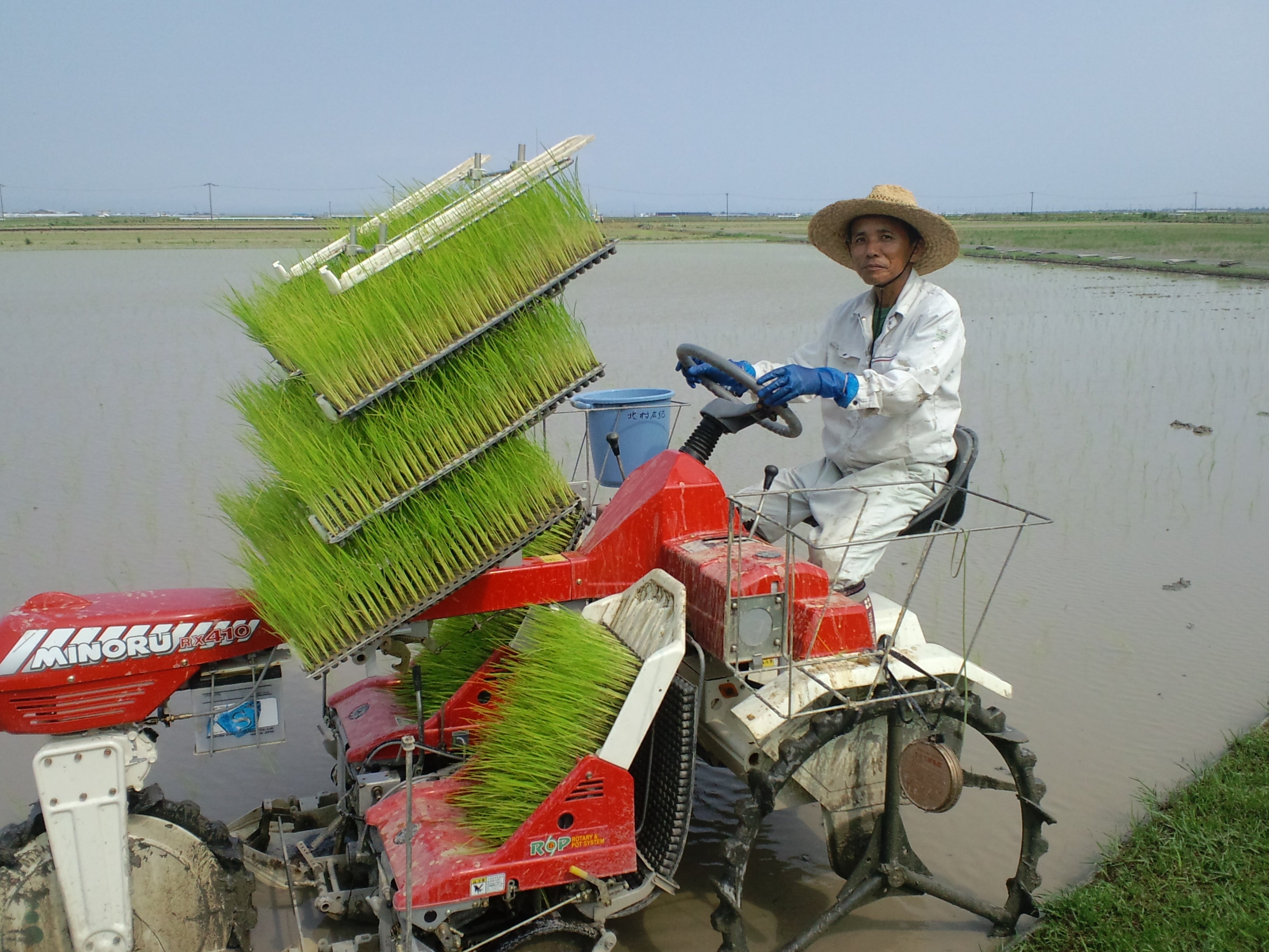 自然栽培に適している、みのるポット式で田植えを行っています。