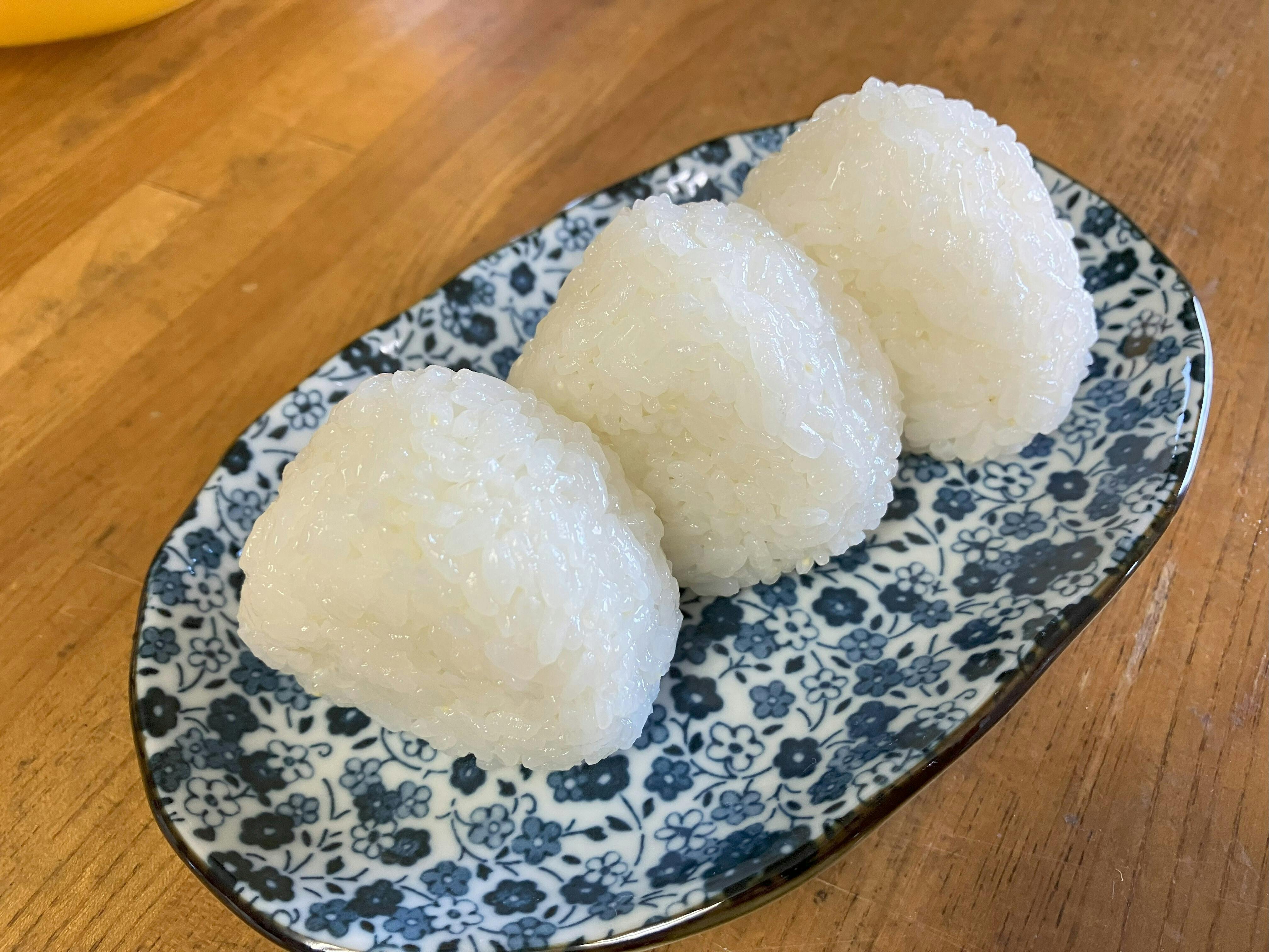 写真は、炊き立て「神の力」のご飯をおにぎりにしました。