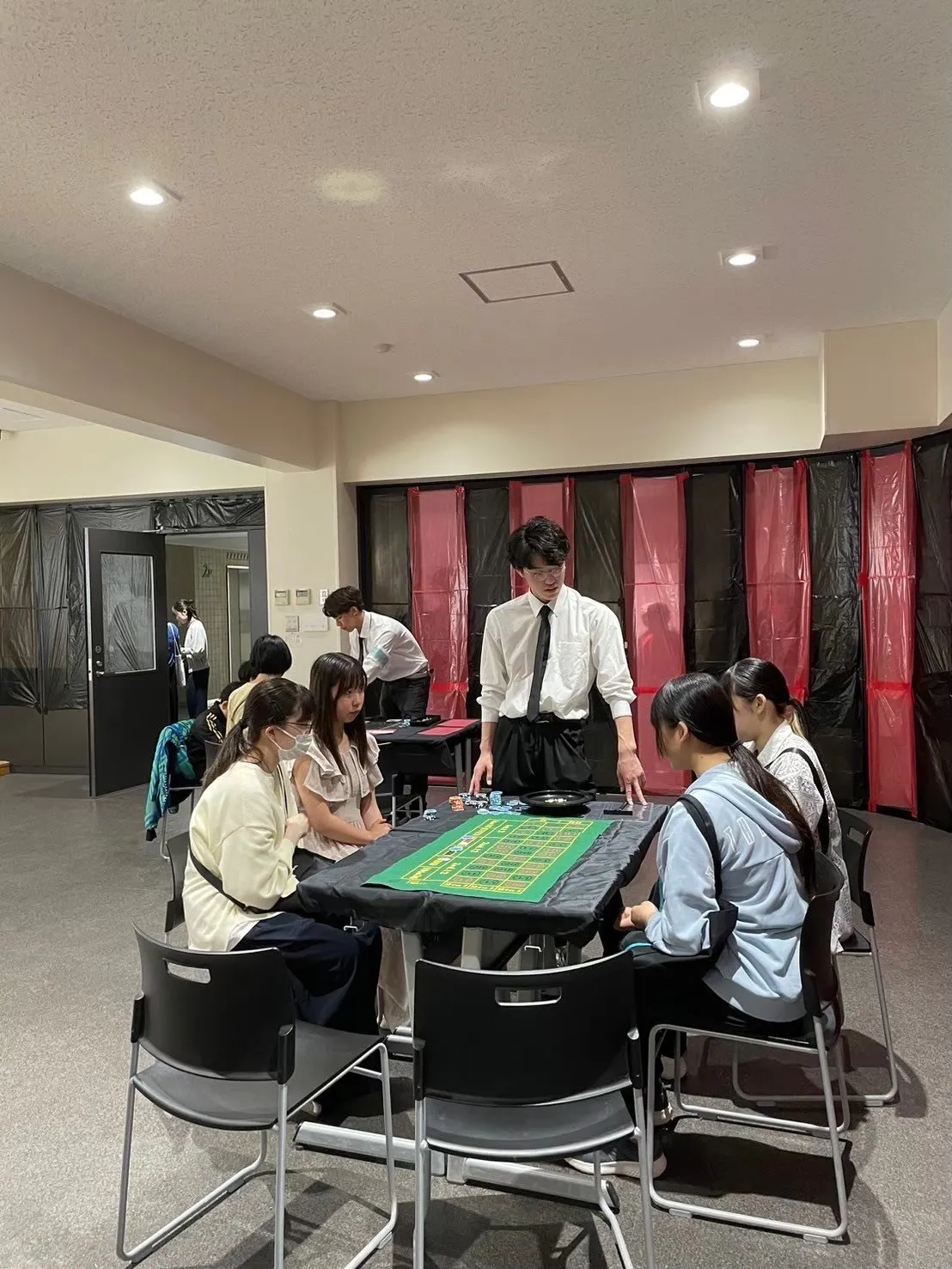校内のラウンジにて、委員がディーラーとなり、ポーカーやルーレット等のゲームを楽しむことができる企画です。老若男女様々な方々が楽しめる人気企画となっています!