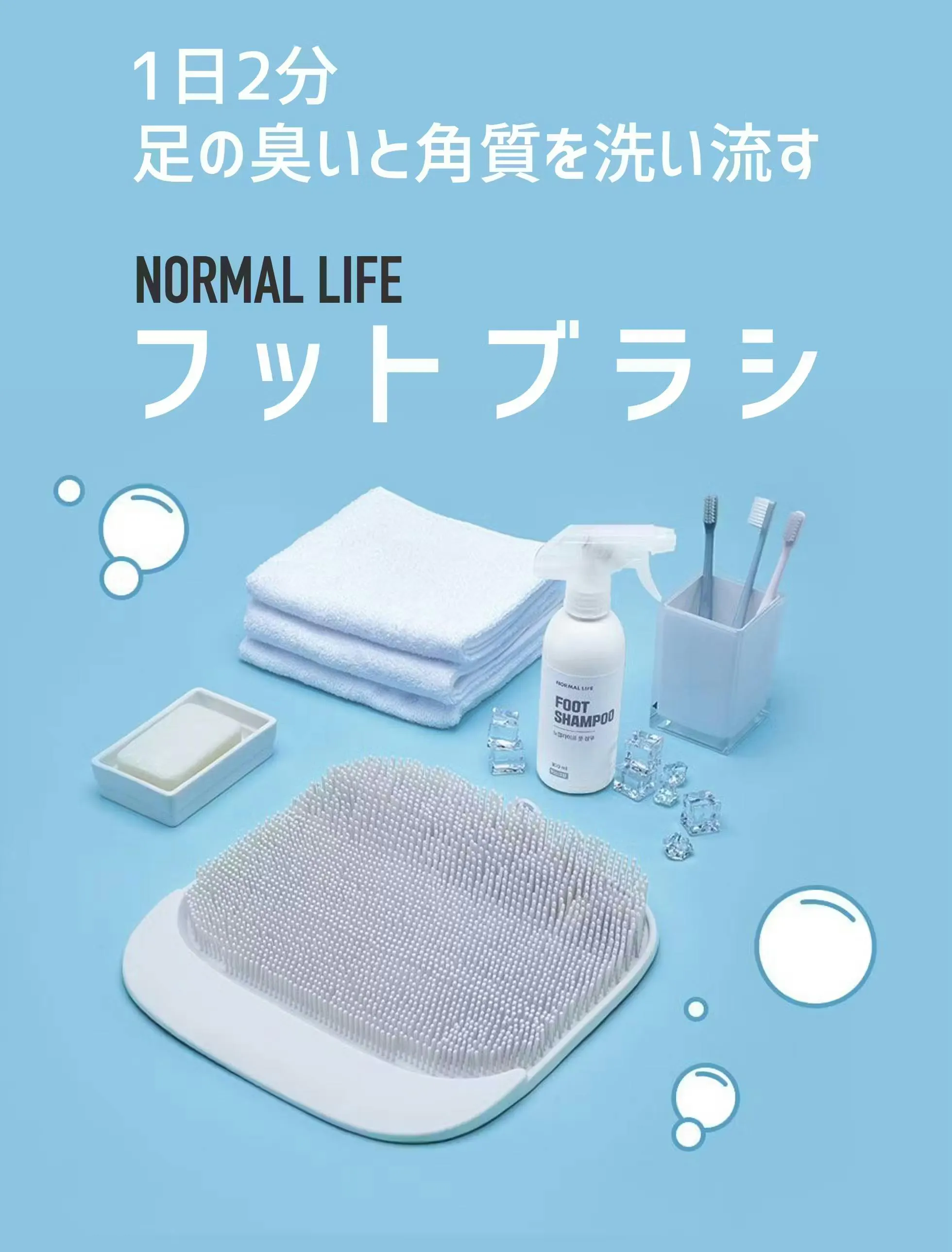 NORMAL LIFE フットブラシは、たくさんの試行錯誤を得てようやくできた宝物です。まず、自ら使いたくなる商品を目指して開発しました。