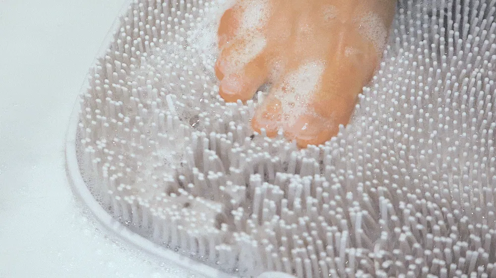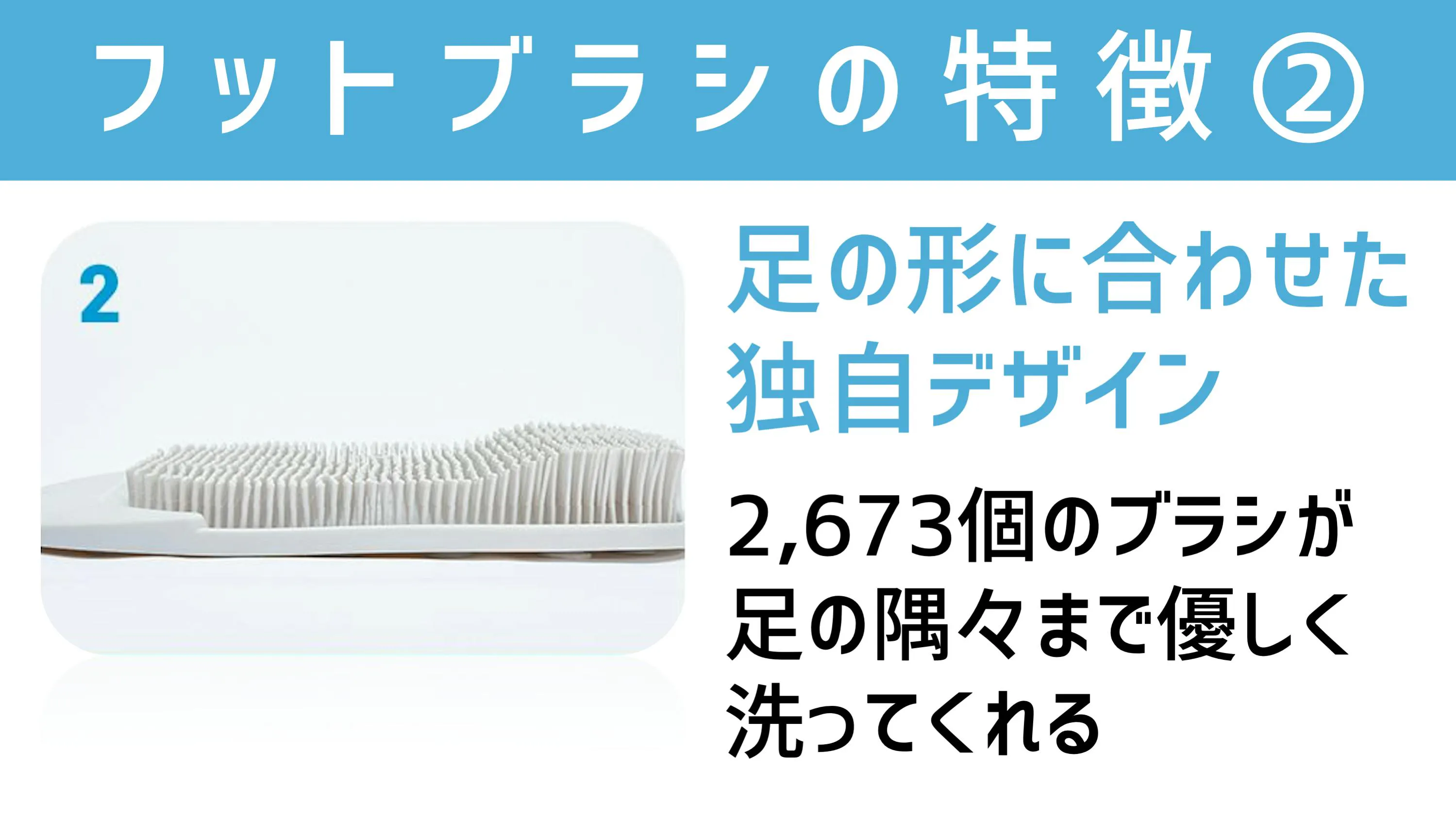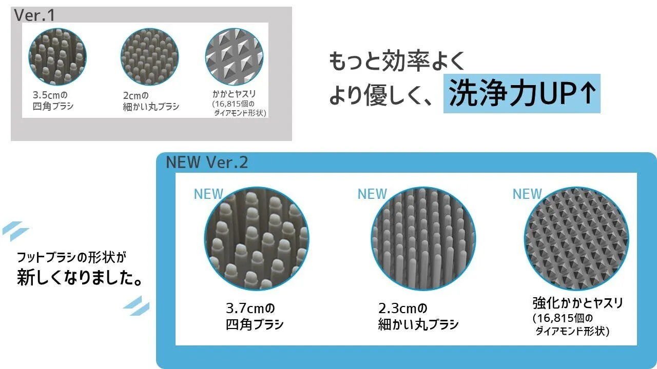 今回のプロジェクトでは、フットブラシが新たにVer.2にアップグレードされました。新しいかかとヤスリは、溜まっていたかかとの汚れがもっとキレイに流してくれます。