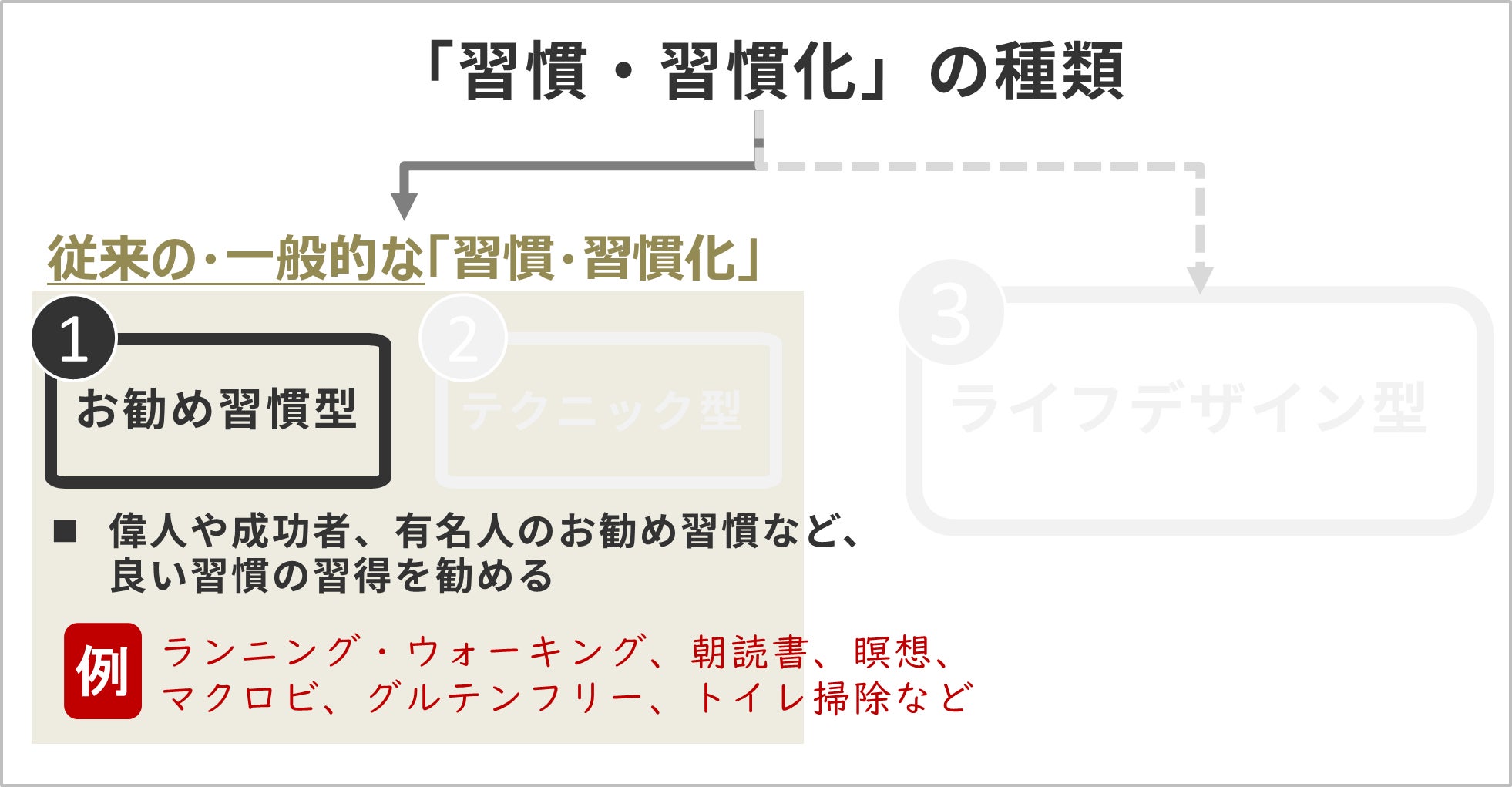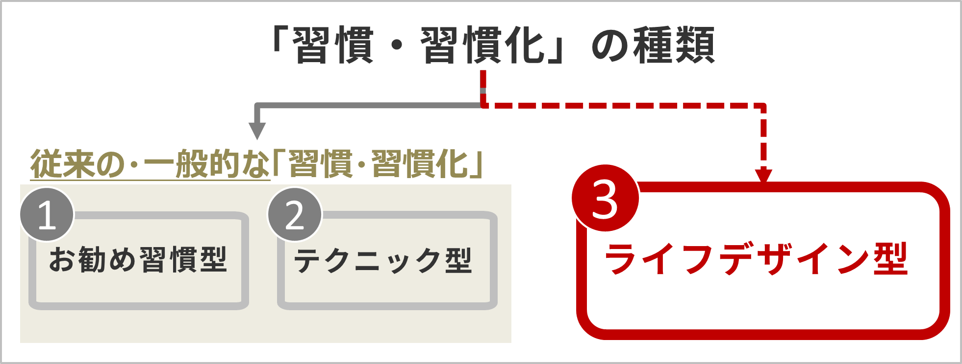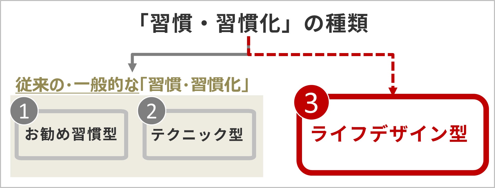 実は、「習慣・習慣化」には大きく分けて以下のような3つの種類があります。