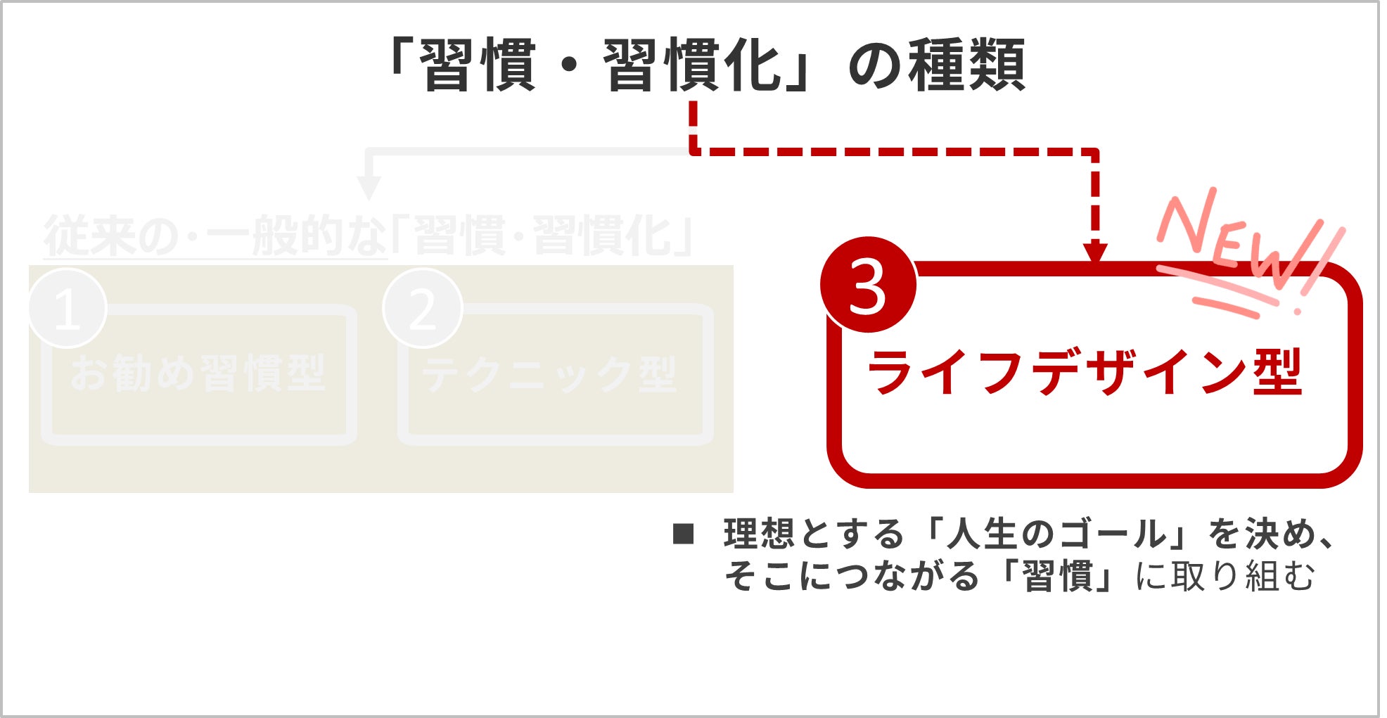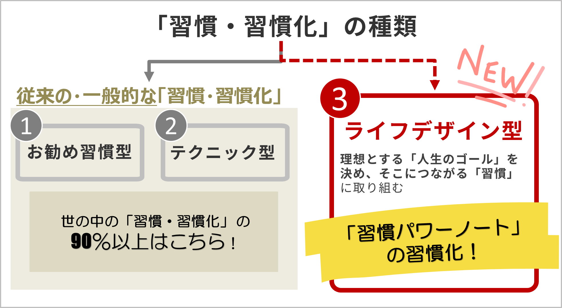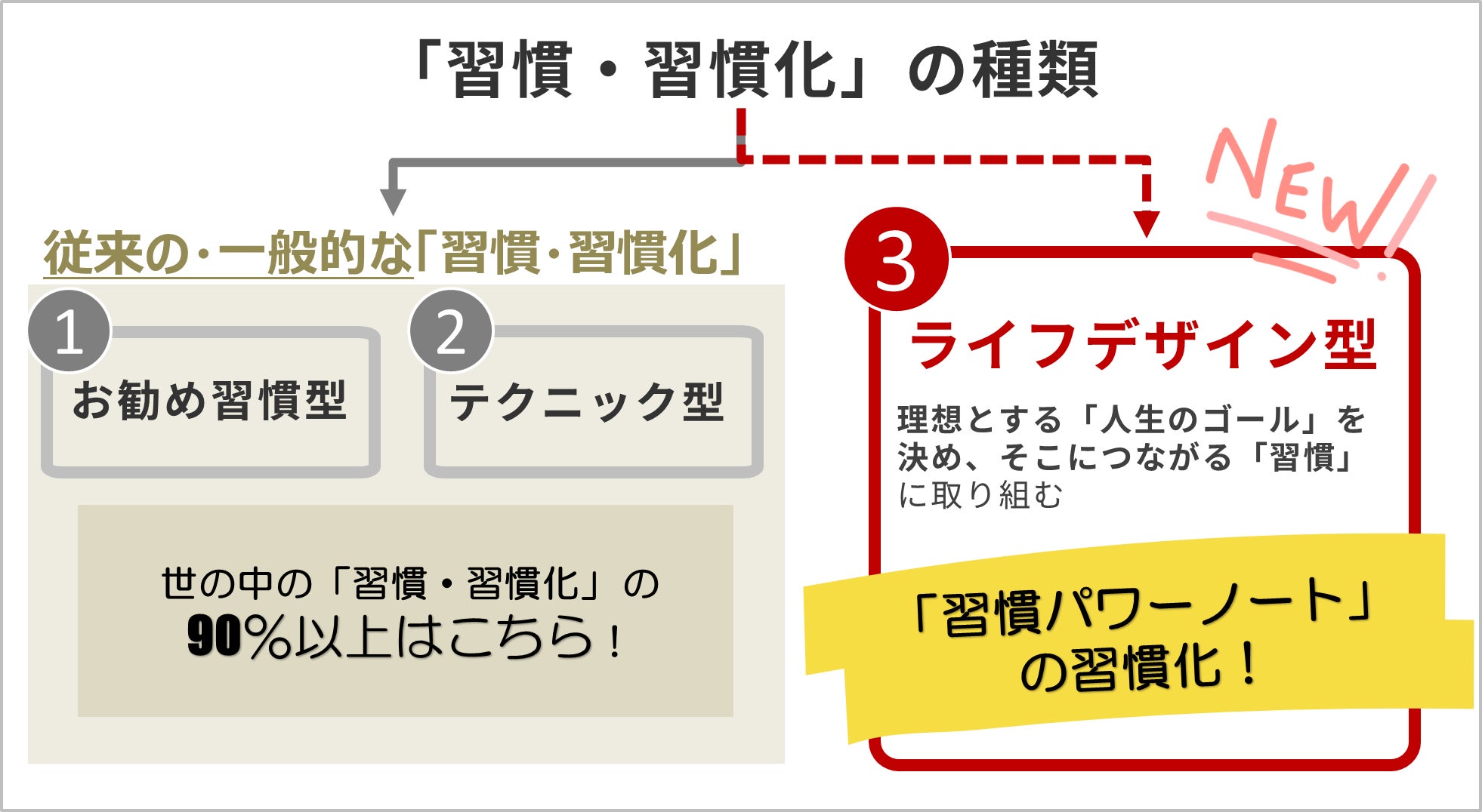 習慣パワーノートの「習慣化」は「ライフデザイン型」です。