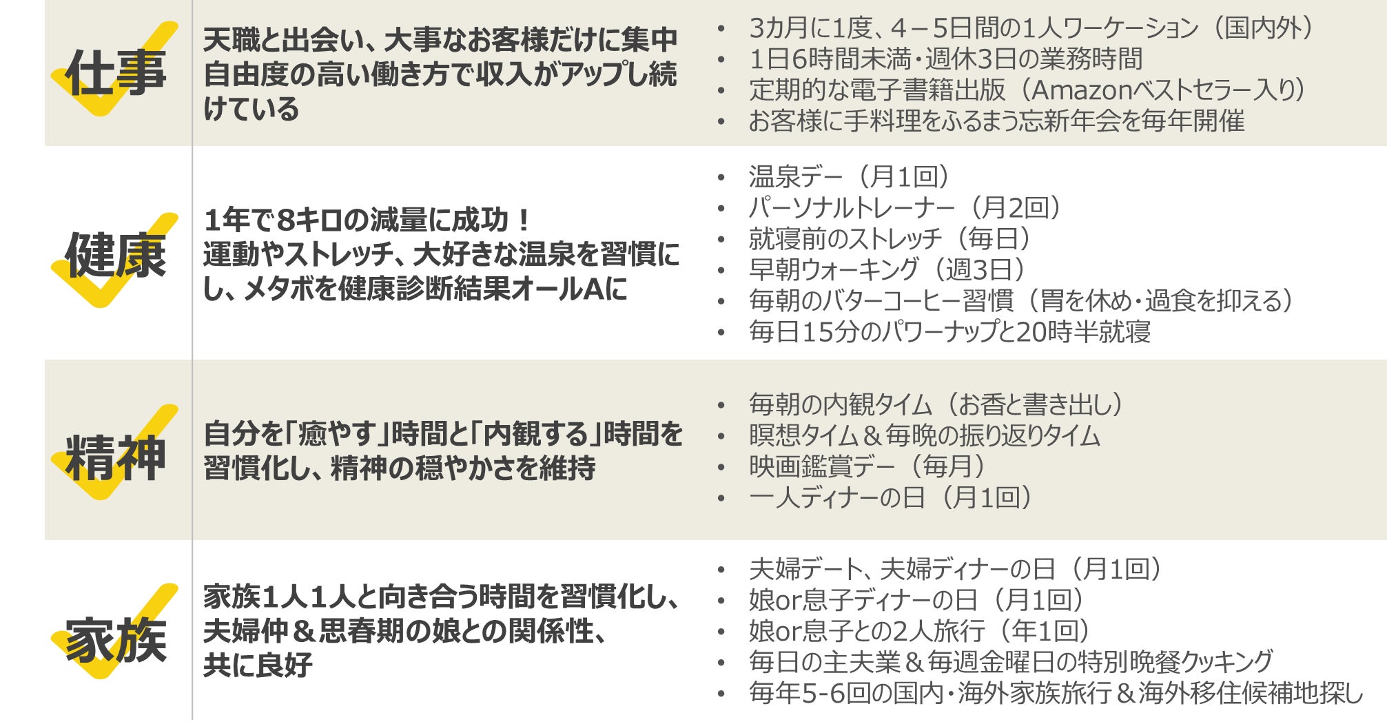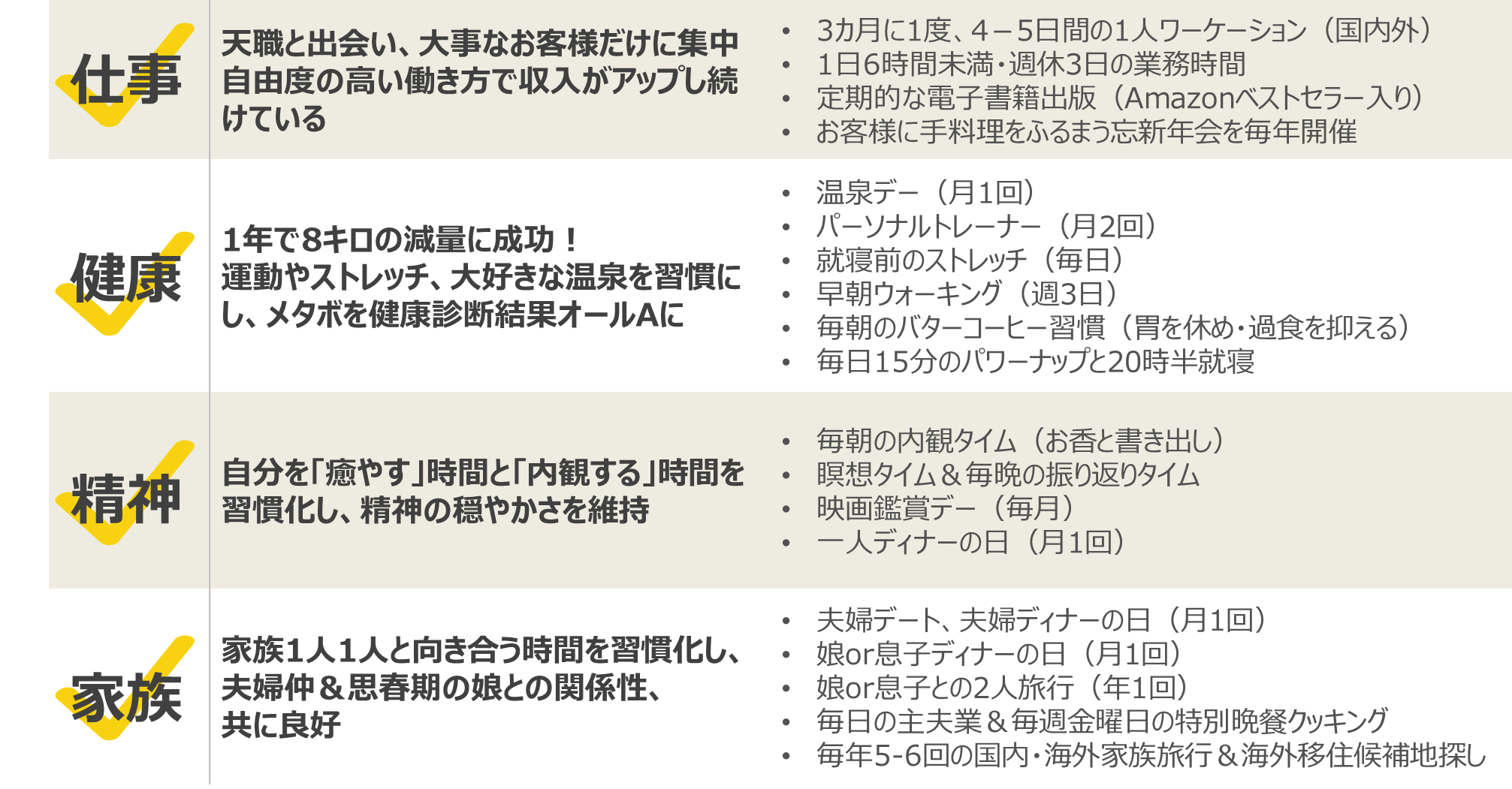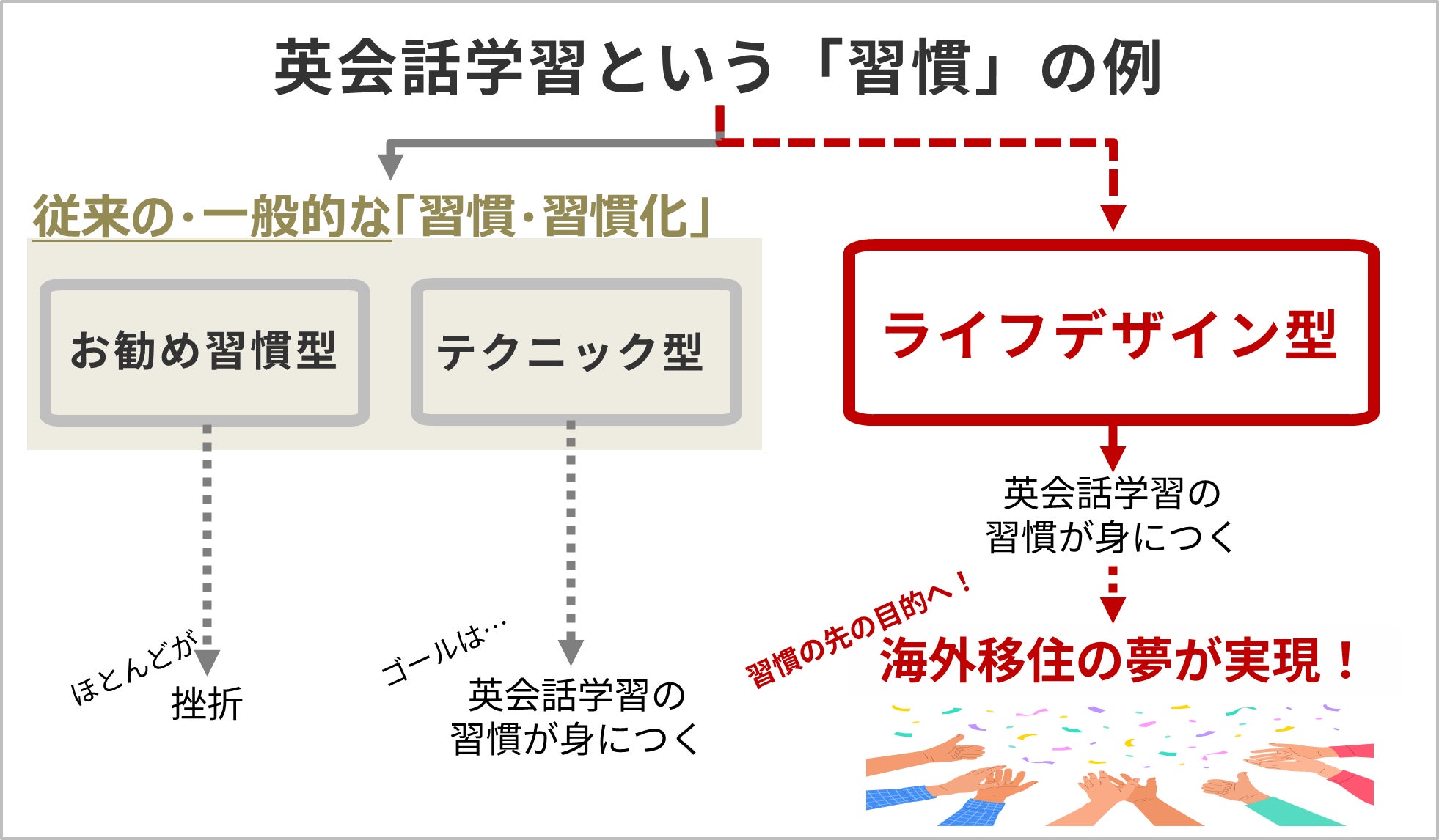 「ライフデザイン型」で取り組んだ場合には、上記のように習慣の先の「なりたい自分」に近づくことができます。