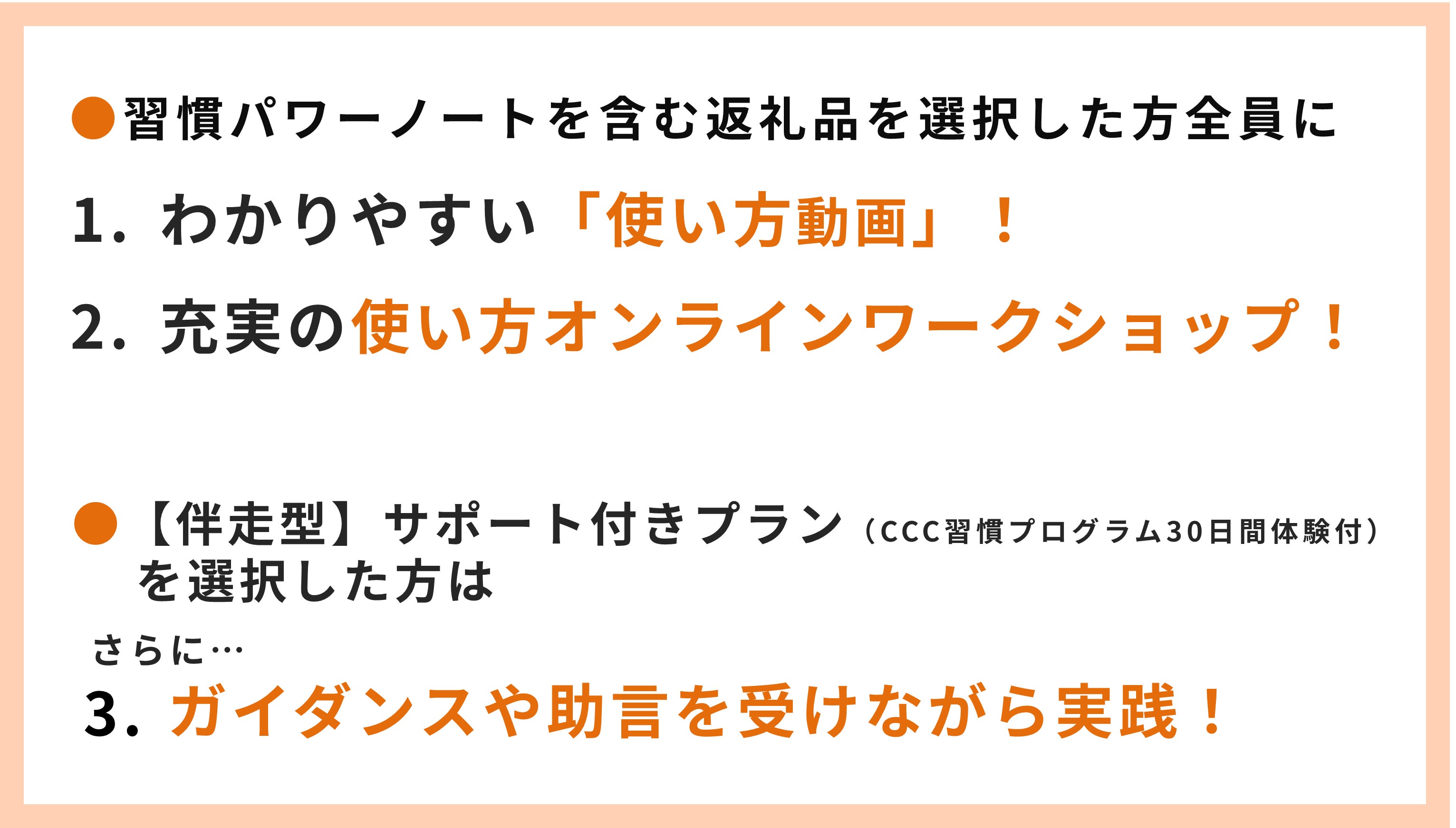 習慣パワーノートの発送、及びその他リターンの利用案内の順次発信