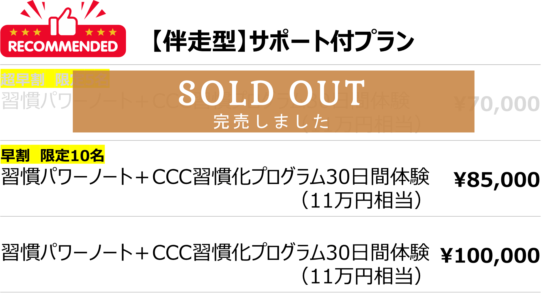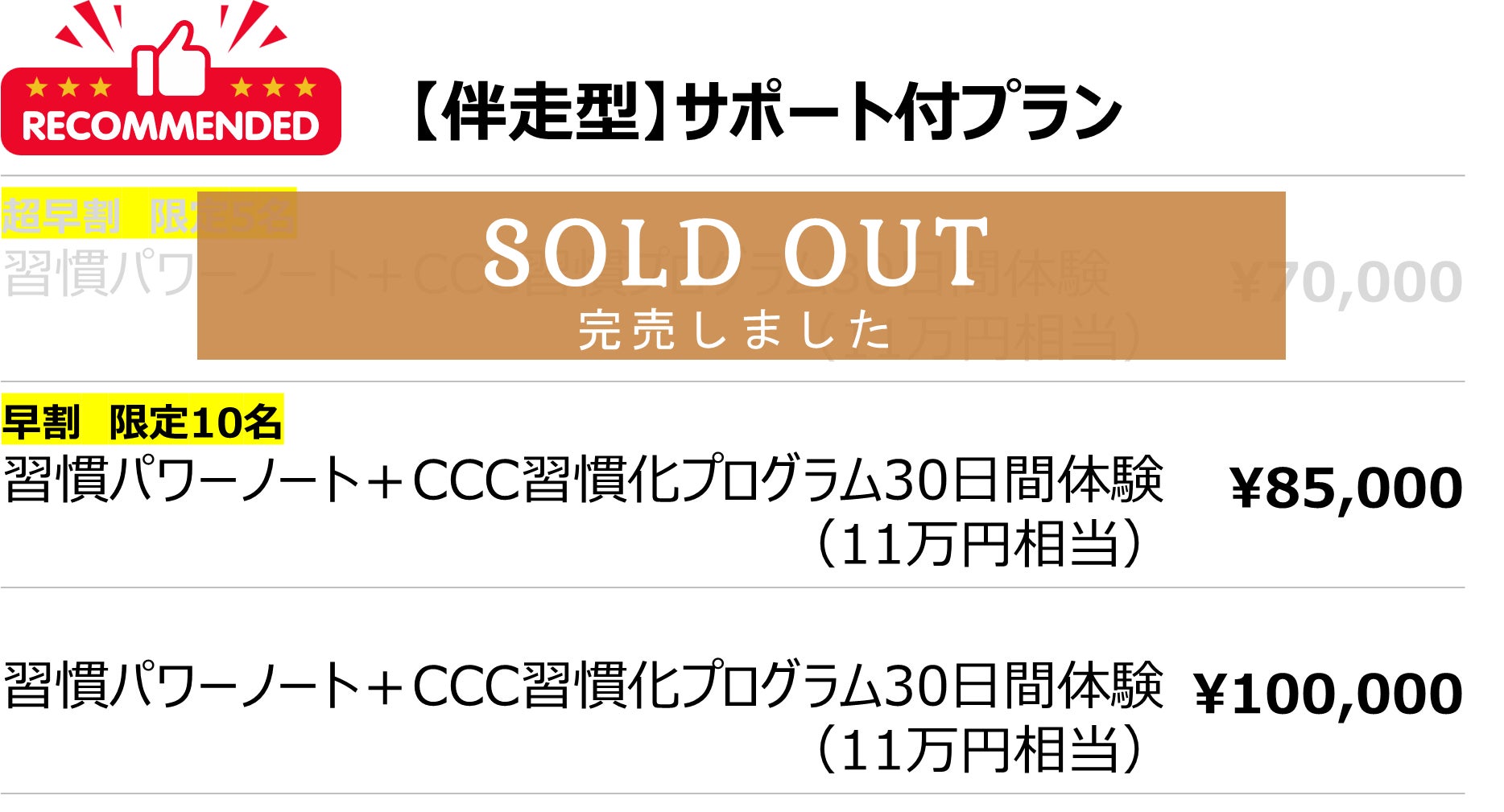 【伴走型プラン】CCC習慣プログラム「超早割」完売しました!