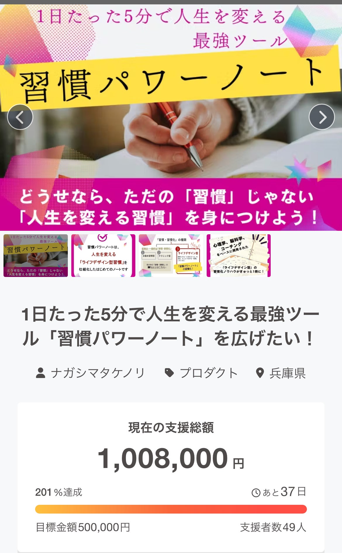 そこで、新たな挑戦として、だれでも手に取れる「習慣パワーノート」という形にしよう!という想いのもと、クラウドファンディングを立ち上げることにしました。