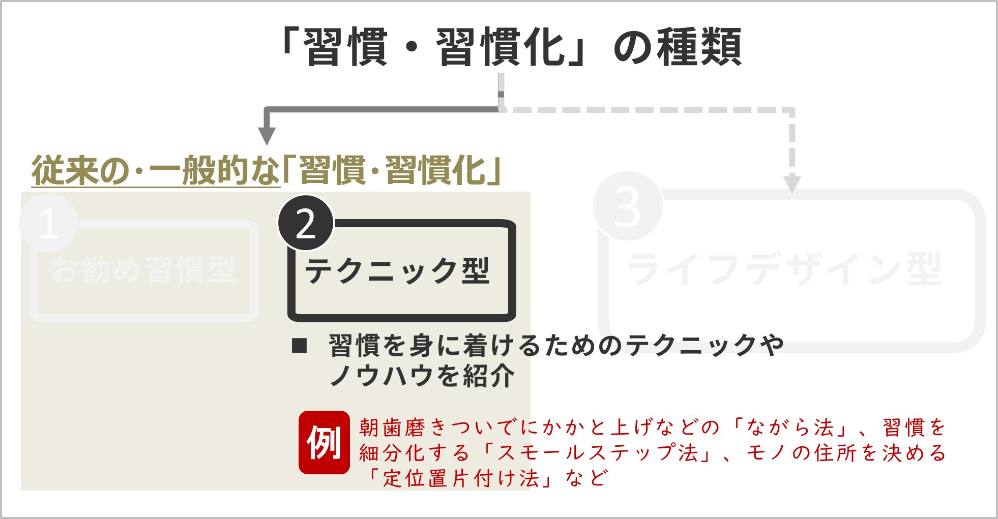 つまり…「お勧め習慣型」で挫折した方にも、「テクニック型」で実感が得られなかった方にも有益です。