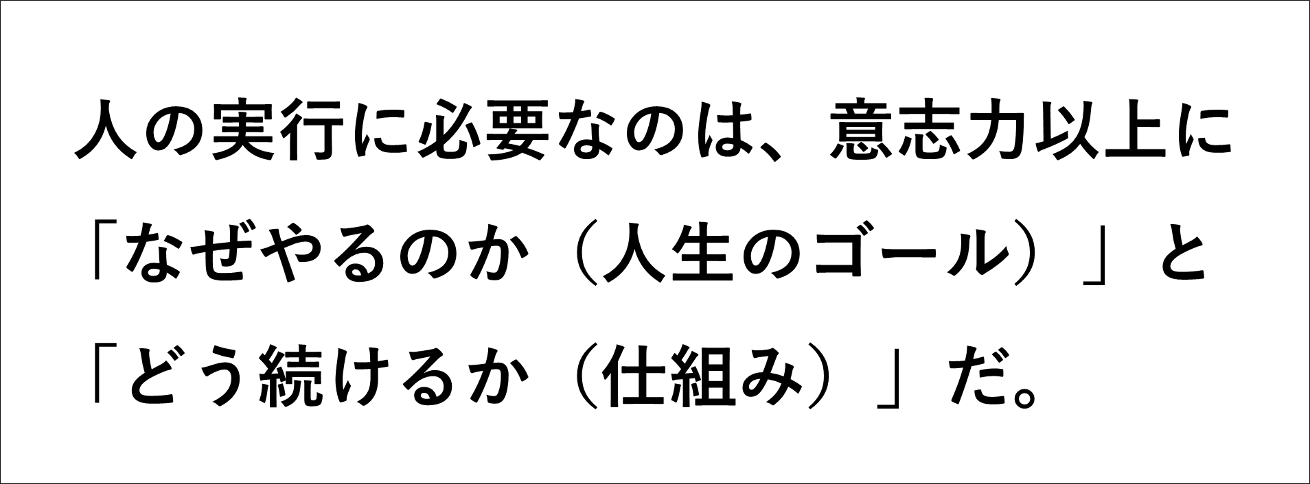 また、これまでは「習慣・習慣化」が人生の変化につながっていないと感じていた人も、その先にある「人生のゴール」に向けて日常が変化していくことを実感できるようになります。
