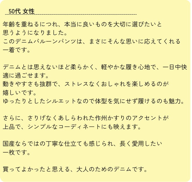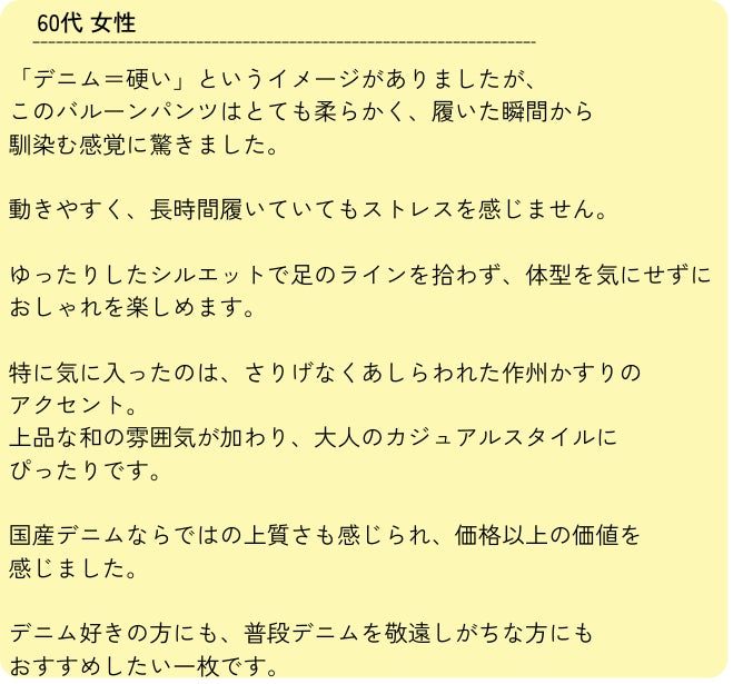 デニムバルーンパンツを作った職人からのコメント