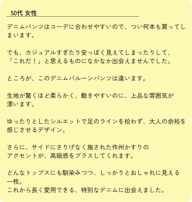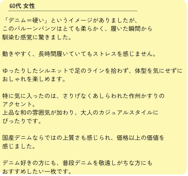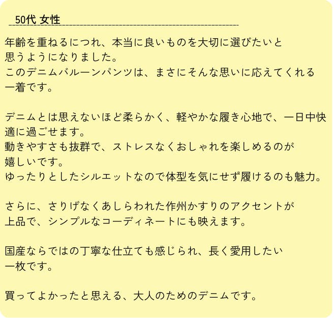 デニムバルーンパンツの開発には、職人としての誇りと地元・岡山への愛を込めました。