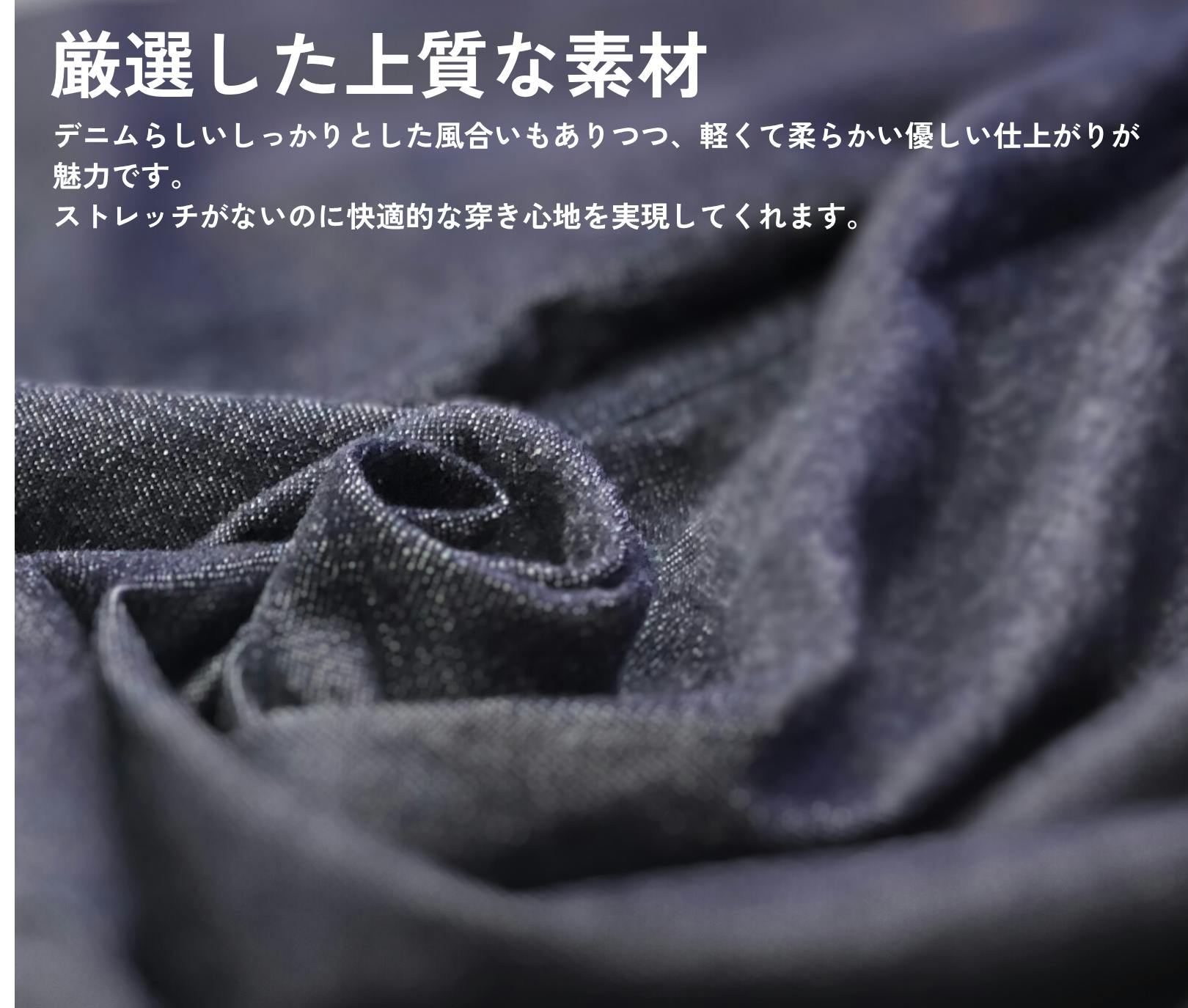 デニムの聖地・岡山の中でも特に歴史と技術が詰まった生地を使うことで、品質の高さを実現しています。