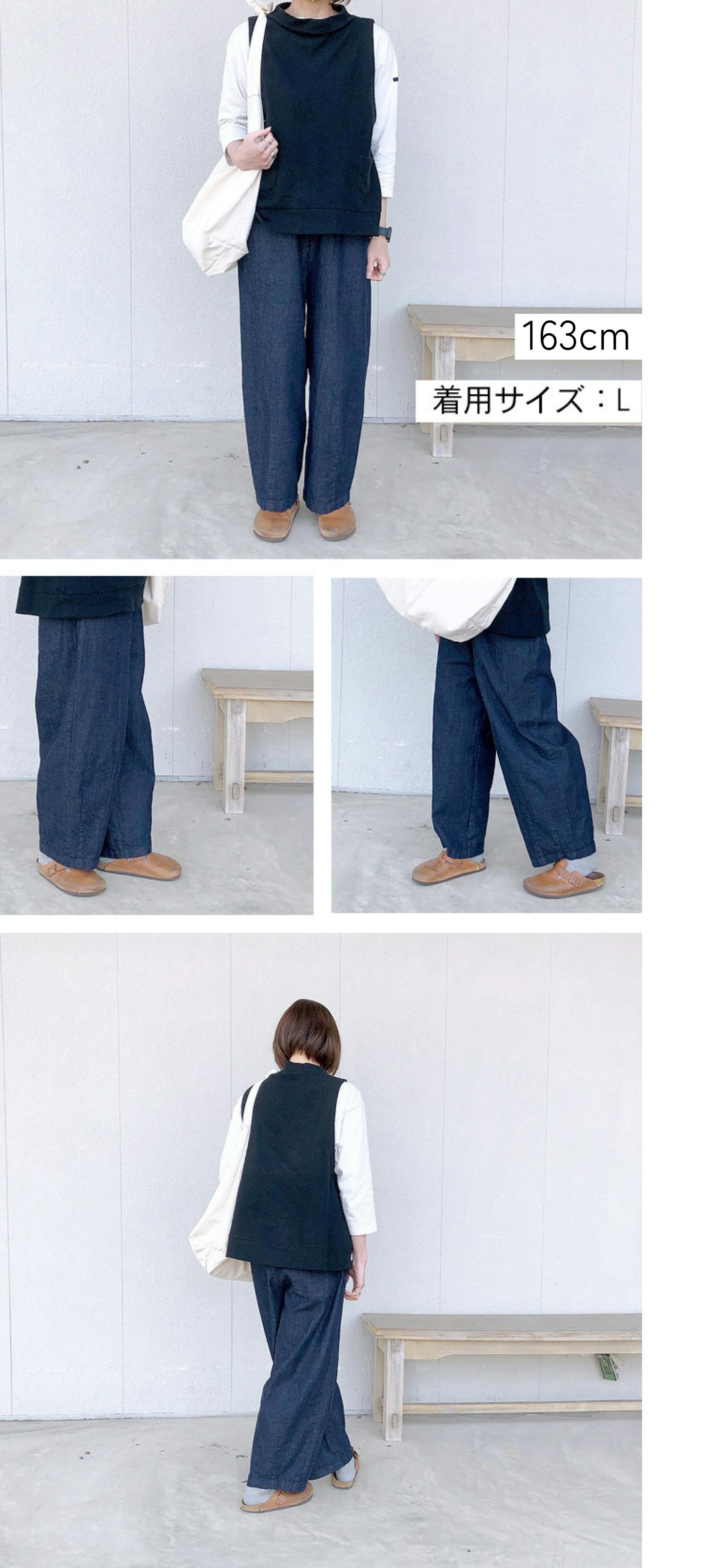 ストンと落ちる自然なテーパードシルエットが綺麗なシルエットを生み出し、デニムパンツながらもナチュラルでラフなこなれた雰囲気に。