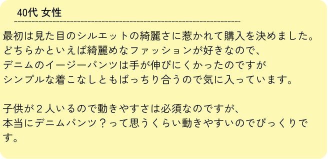 忙しく働く女性のために、仕事とプライベートの両方で穿けて、色々なトップスと合わせてもお洒落にコーディネートできるパンツを作りたい。