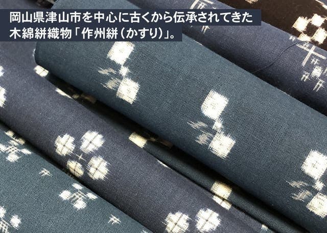 作州絣は、太めの木綿糸を使用して織り上げられた素朴な織物で、丈夫なことから庶民の生地として広まりました。