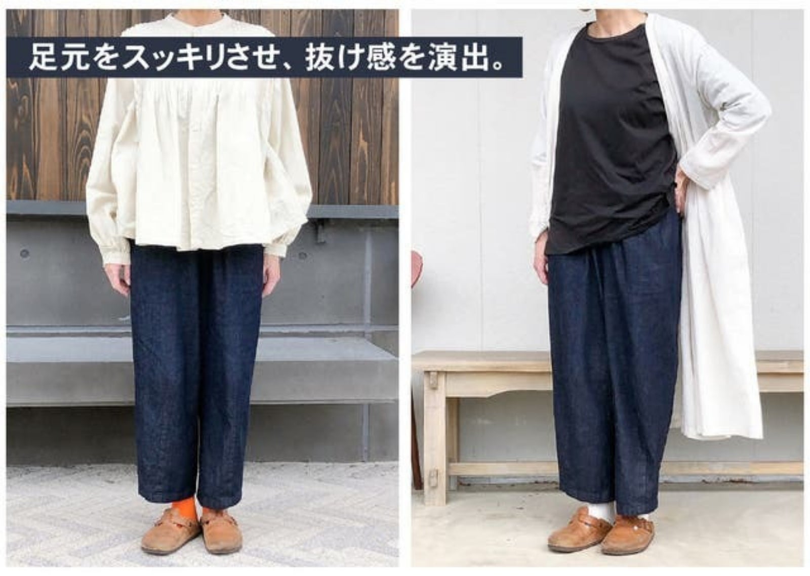 ▸抜け感や清潔感を感じさせるために足元はすっきり見せたい。
