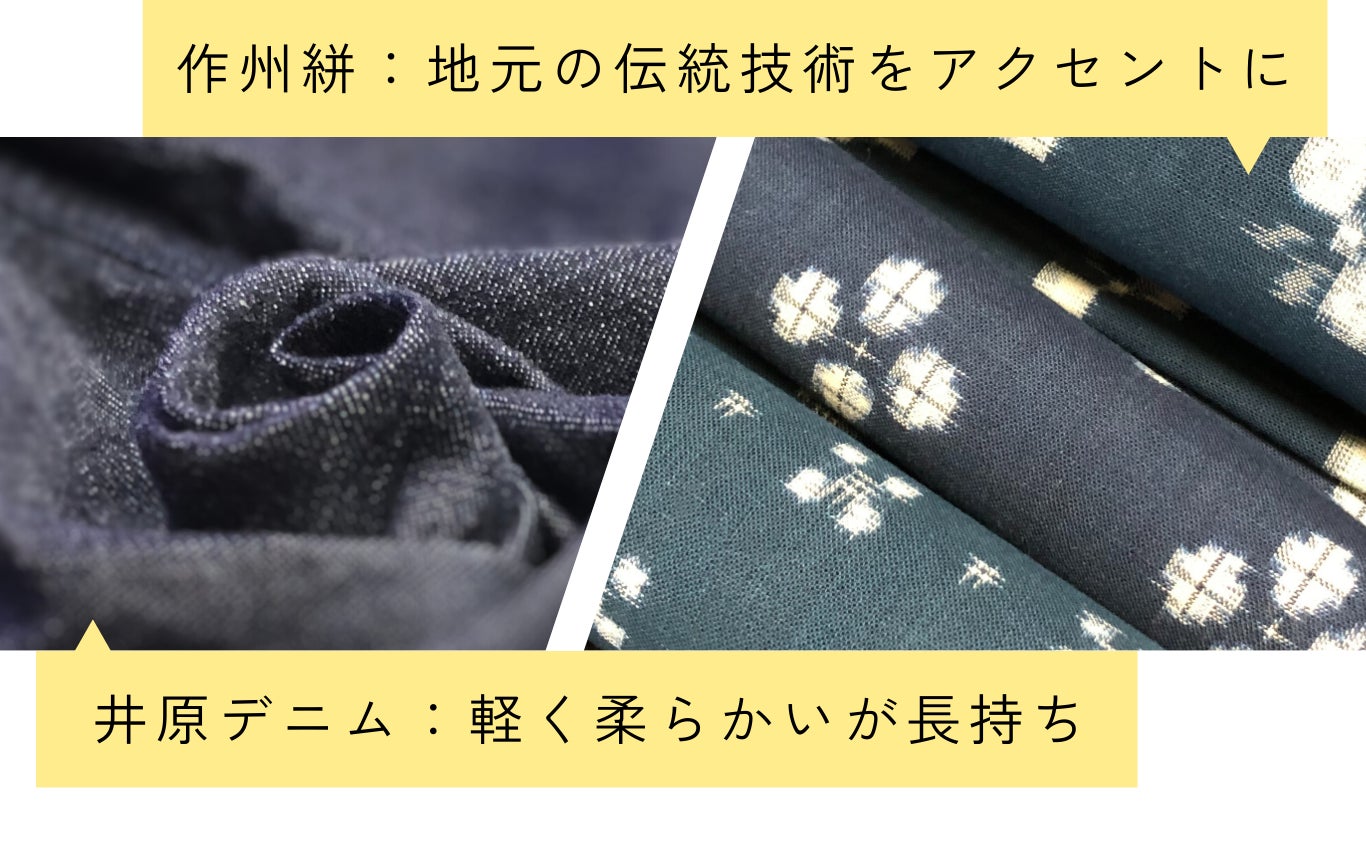 井原産のデニムは、耐久性の高さと柔らかさを兼ね備えているのが特徴。