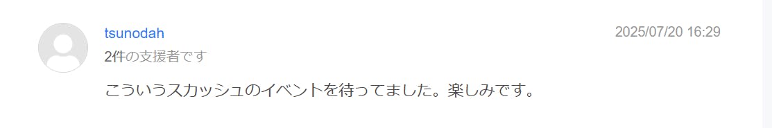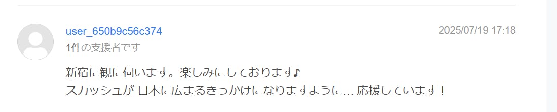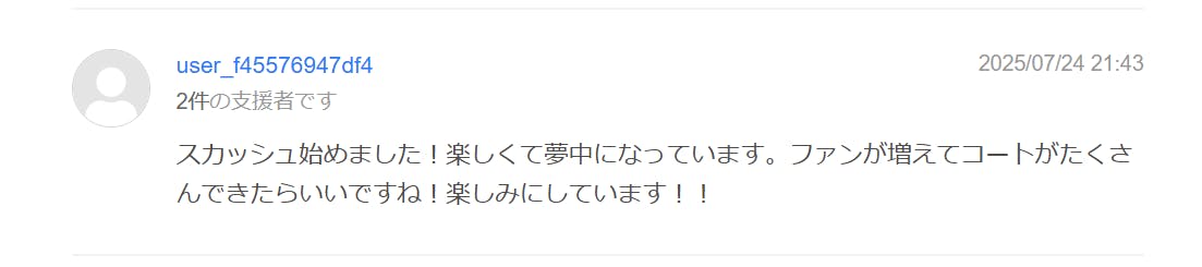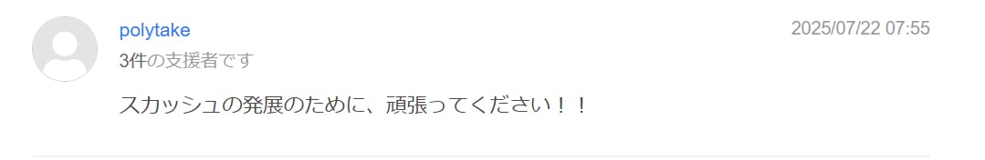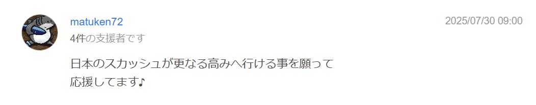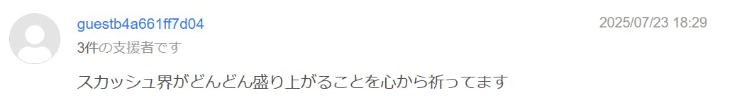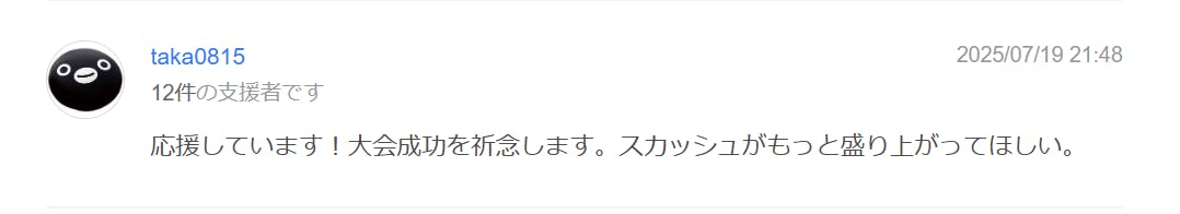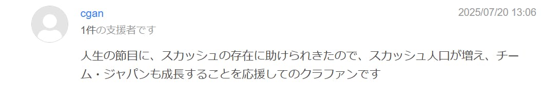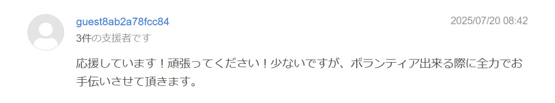 ご支援いただき、コメントも寄せて頂いてくれた方の声を、一部ではありますがご紹介させていただくコーナー。 嬉しいですし、身が引き締まります!!