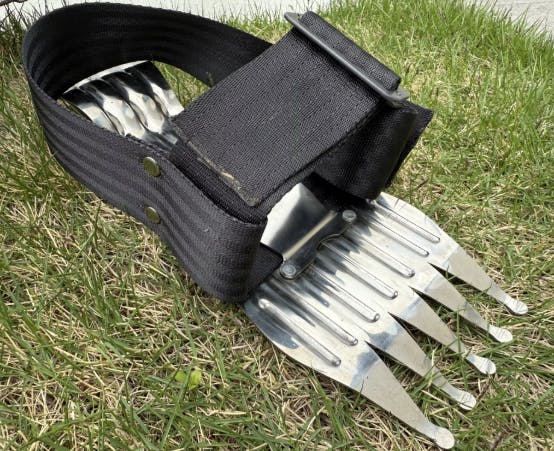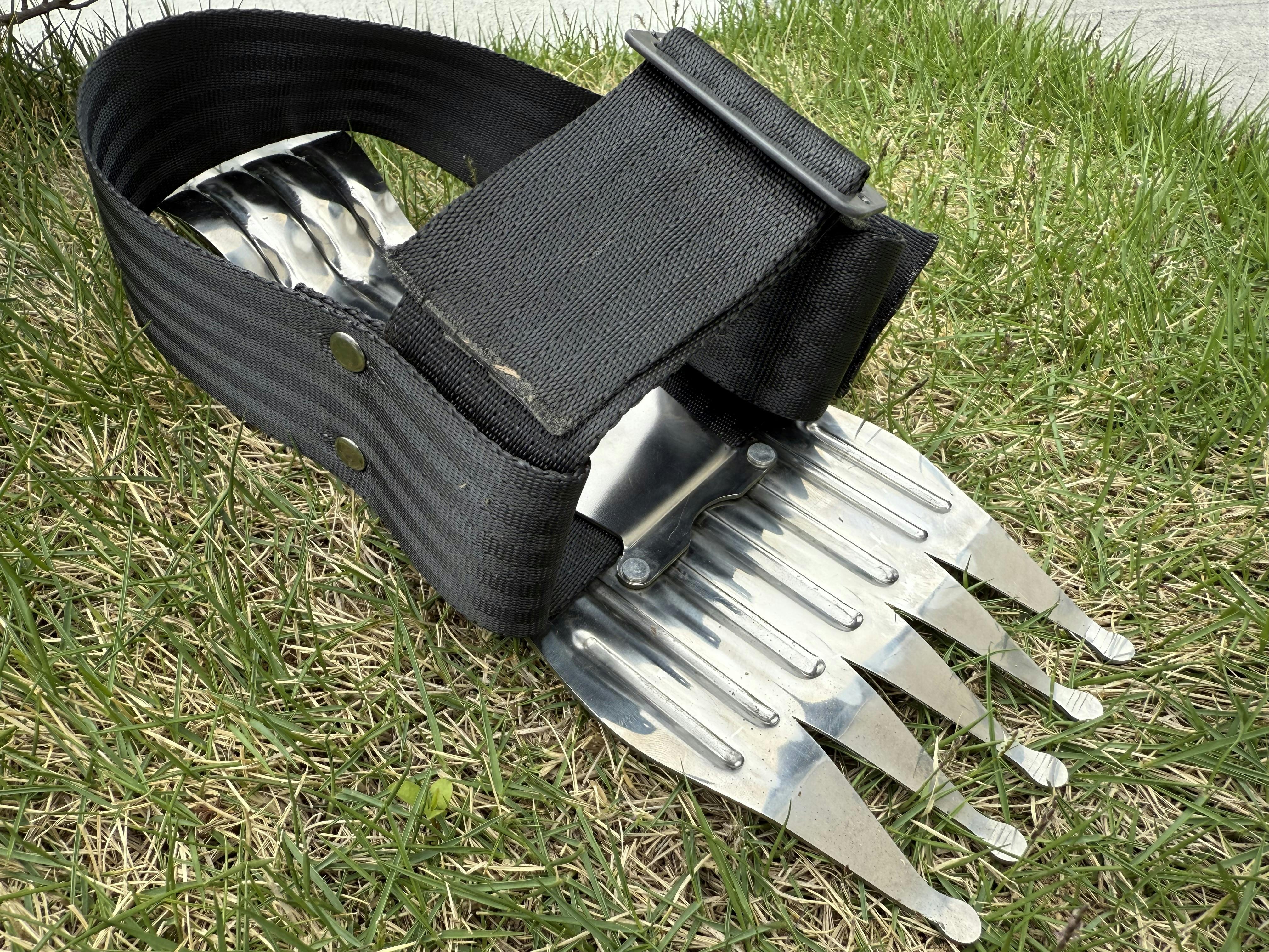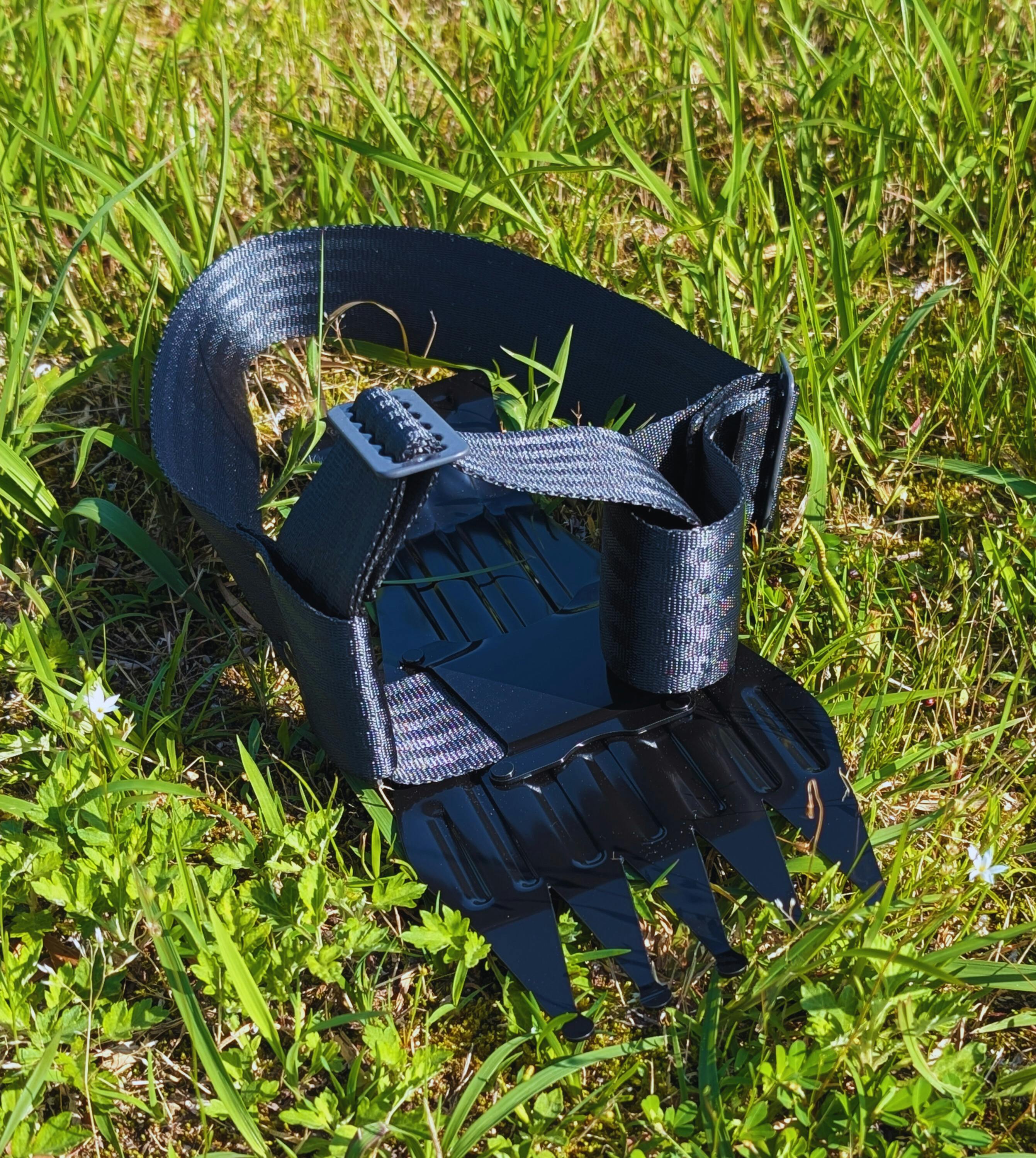 プロジェクトリーダーの岸本です。金属部品製作やDIY、簡単な修理などものづくりが大好きなお茶目な者です。身長175cm、体重90kgの相撲体系の体つきです。また、顔もいまいちで、膝も良くなく、かがむのが辛い。更に私自身手が不自由なため、「自分の為でもあり、また誰もが自由に使えるモノを創りたい」という強い想いがありました。それが従来なかった「脚力を使って草を刈る」草刈り器具です。草刈り道具として、鎌が主流で安価、草刈り機と言った高額な機械まで幅広く使用されています。しかしどれも手で刈る道具で、機械となると両手が必要で何かしらの燃料や電気、安全性が必要になります。また暑い中膝をまげて腰を曲げ、かがんで手で刈る作業の辛さがあり少しでも楽に作業が出来ないものかと考えました。そこで足に何かをつければ楽に刈れるのではないかと発想し、考案した物がこの商品です。両手を使わない事もあって手には日傘や水筒など持って作業が出来、熱中症対策にもなります。