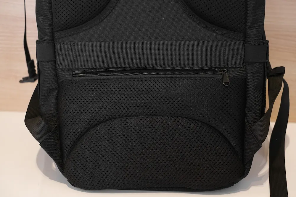 背中に密着するファスナーなので、